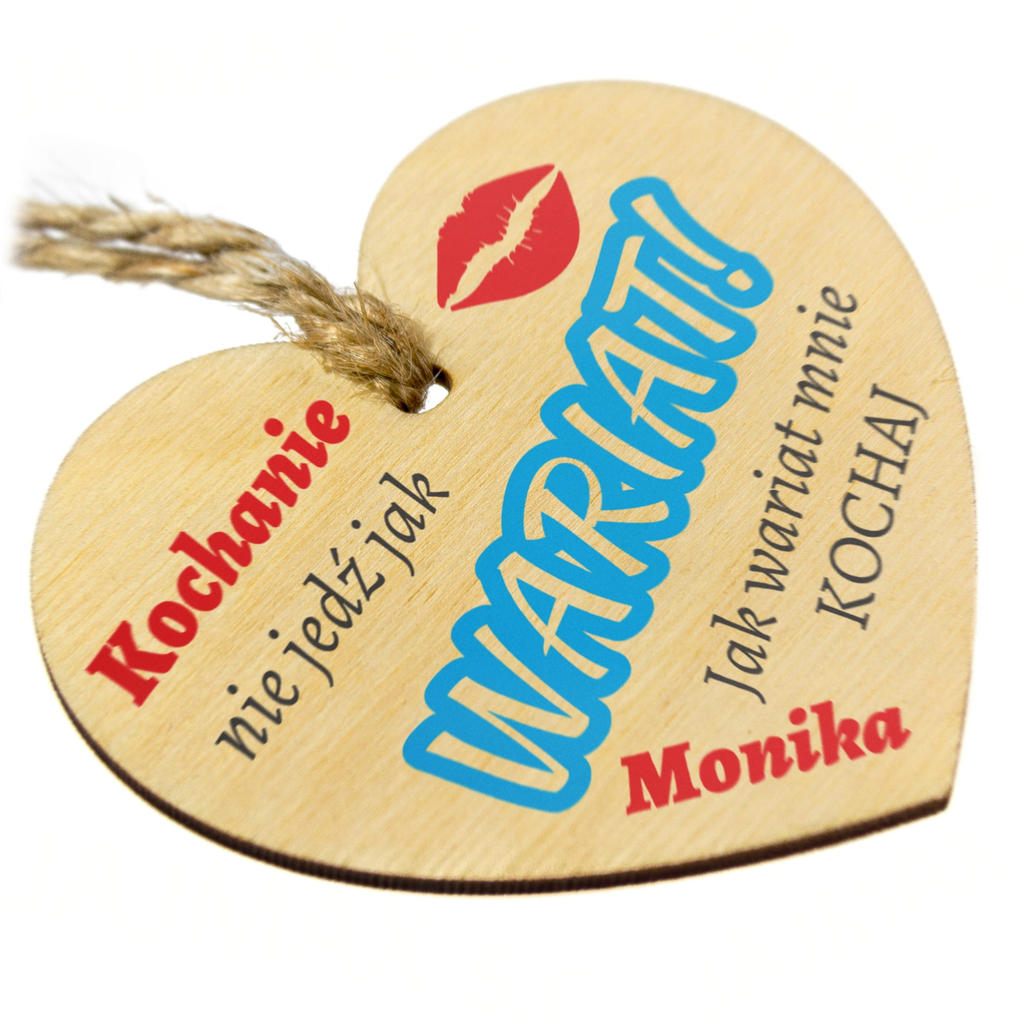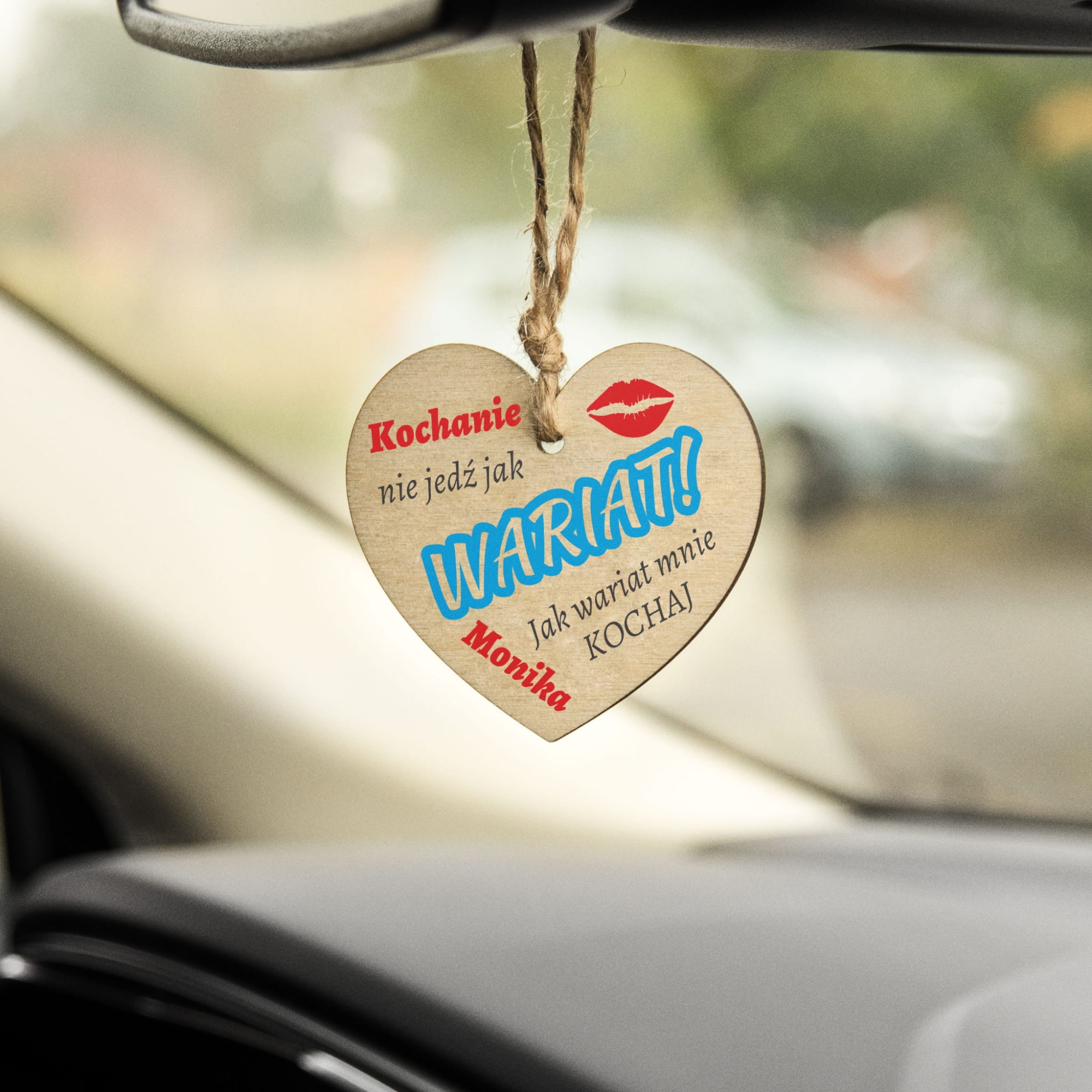 Zawieszka drewniana do auta Nie jedź jak wariat jak wariat mnie kochaj imię i podpis