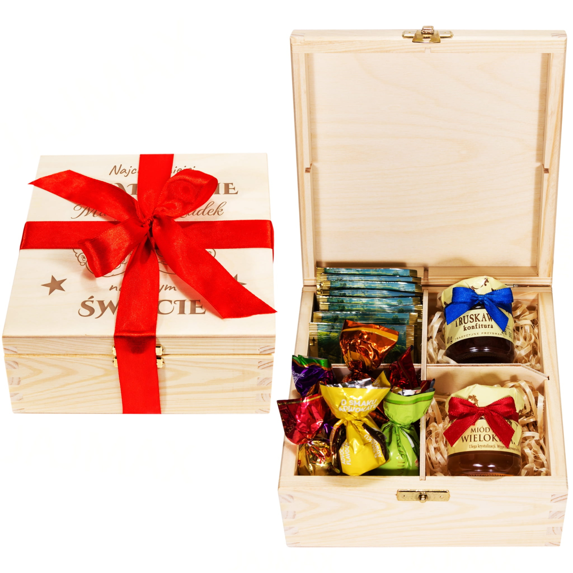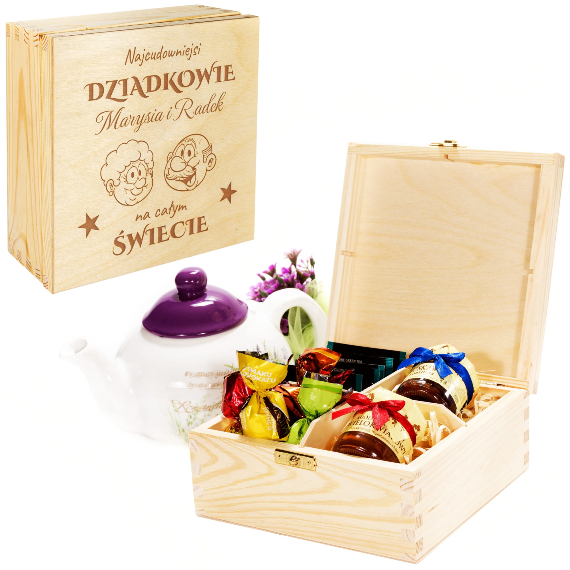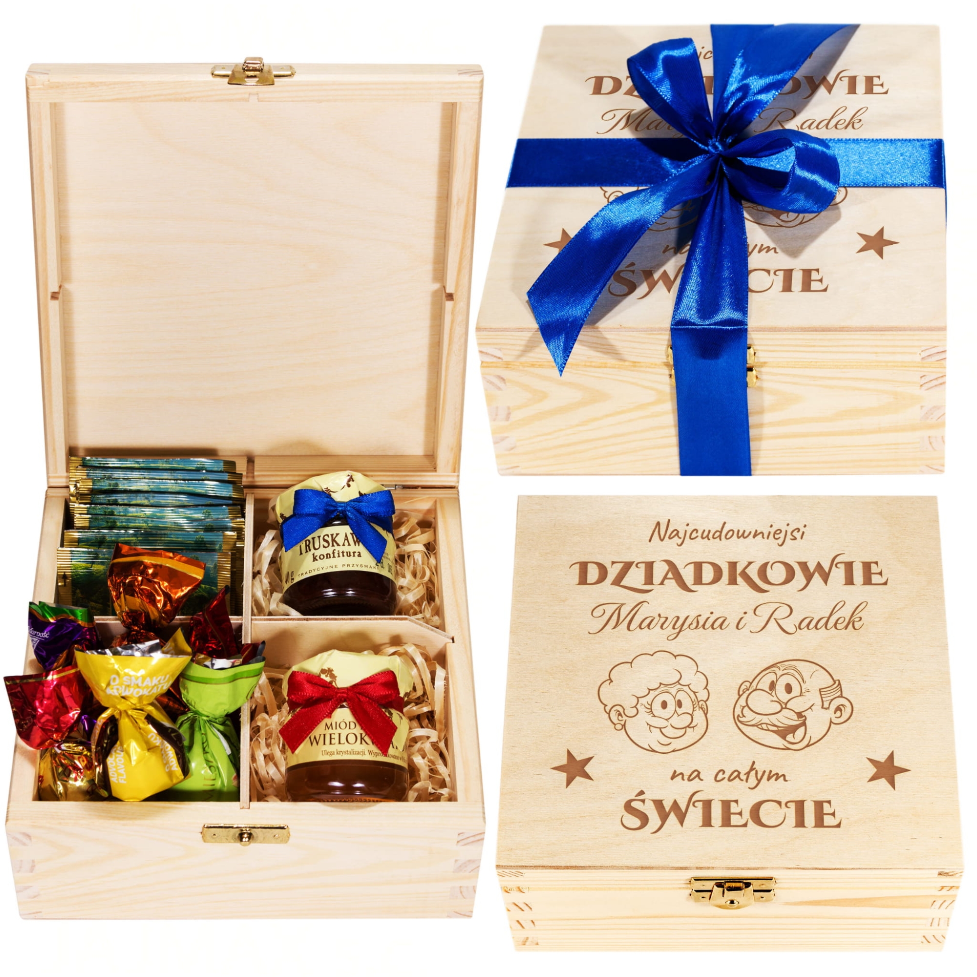 Prezentowy box upominkowy z okazji Dnia Dziadka prezent od wnuków HERBACIARKA ZESTAW PODARUNKOWY super pomysł na prezent dla dziadków DREWNIANY BOX UPOMINKOWY miód praliny dżem herbaty na Dzień Dziadka ZESTAW PREZENTOWY DLA DZIADKA 22 STYCZNIA DZIEŃ DZIADKA słodki box DREWNIANY BOX NA PREZENT DLA DZIADKÓW zestaw herbaty miód konfitura SŁODKOŚCI BABCI pudełko z imieniem POMYSŁ NA PREZENT NA DZIEŃ BABCI Pudełko prezentowe Słodki Upominek na Dzień Babci i Dziadka Pudełko smakołyków pomysłowy prezent na Dzień Babci z grawerem Pudełko drewniane super zestaw dla dziadka grawer Najlepszy Dziadek ZESTAW UPOMINKOWY Najlepsza Babcia pod słońcem pudełko smakołyków DLA DZIADKÓW pudełko smakołyków z imionami wnuków prezent premium Herbaciarka Zestaw Podarunkowy Dla Babci Dla Dziadka nadruk