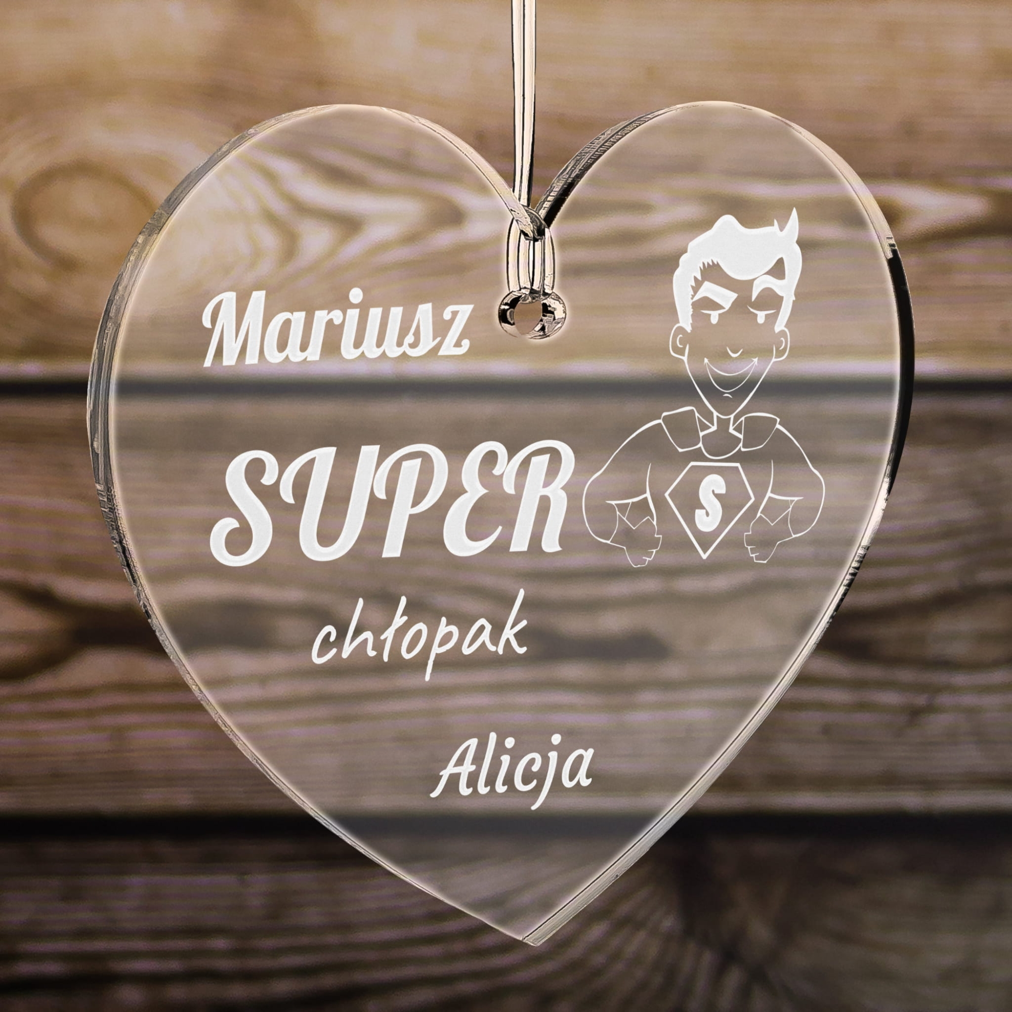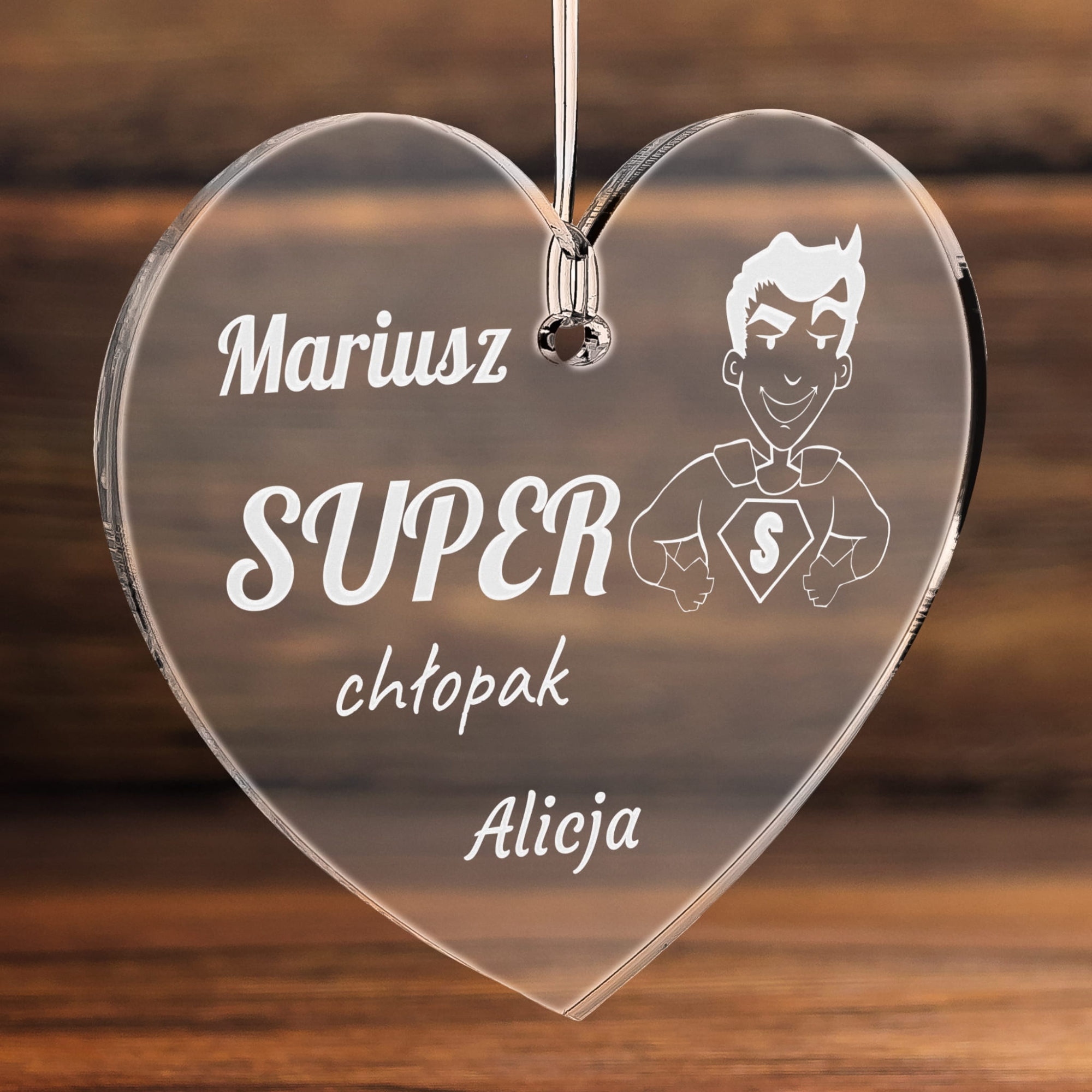 UPOMINEK DLA NIEGO serce Super chłopak zawieszka do auta grawer
