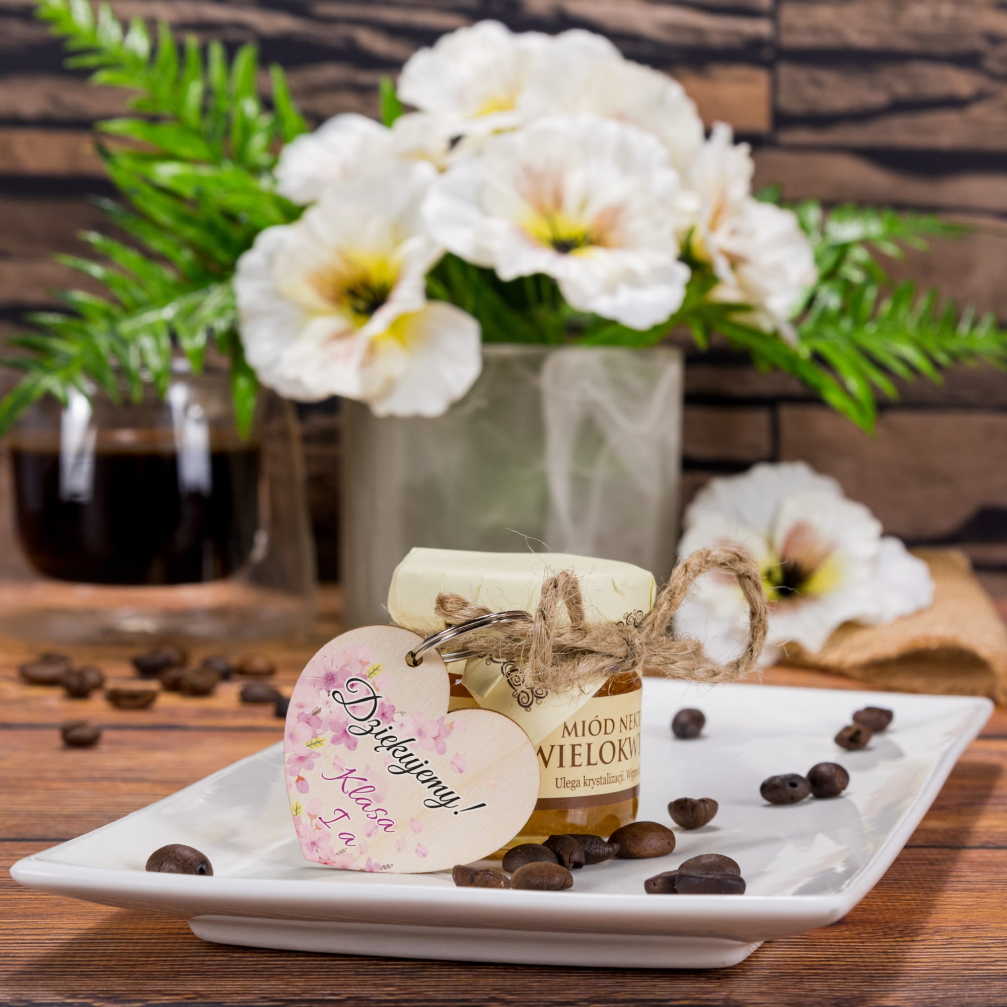 Zestaw miód i brelok drewniany z Twoim grawerem super prezent dla nauczyciela