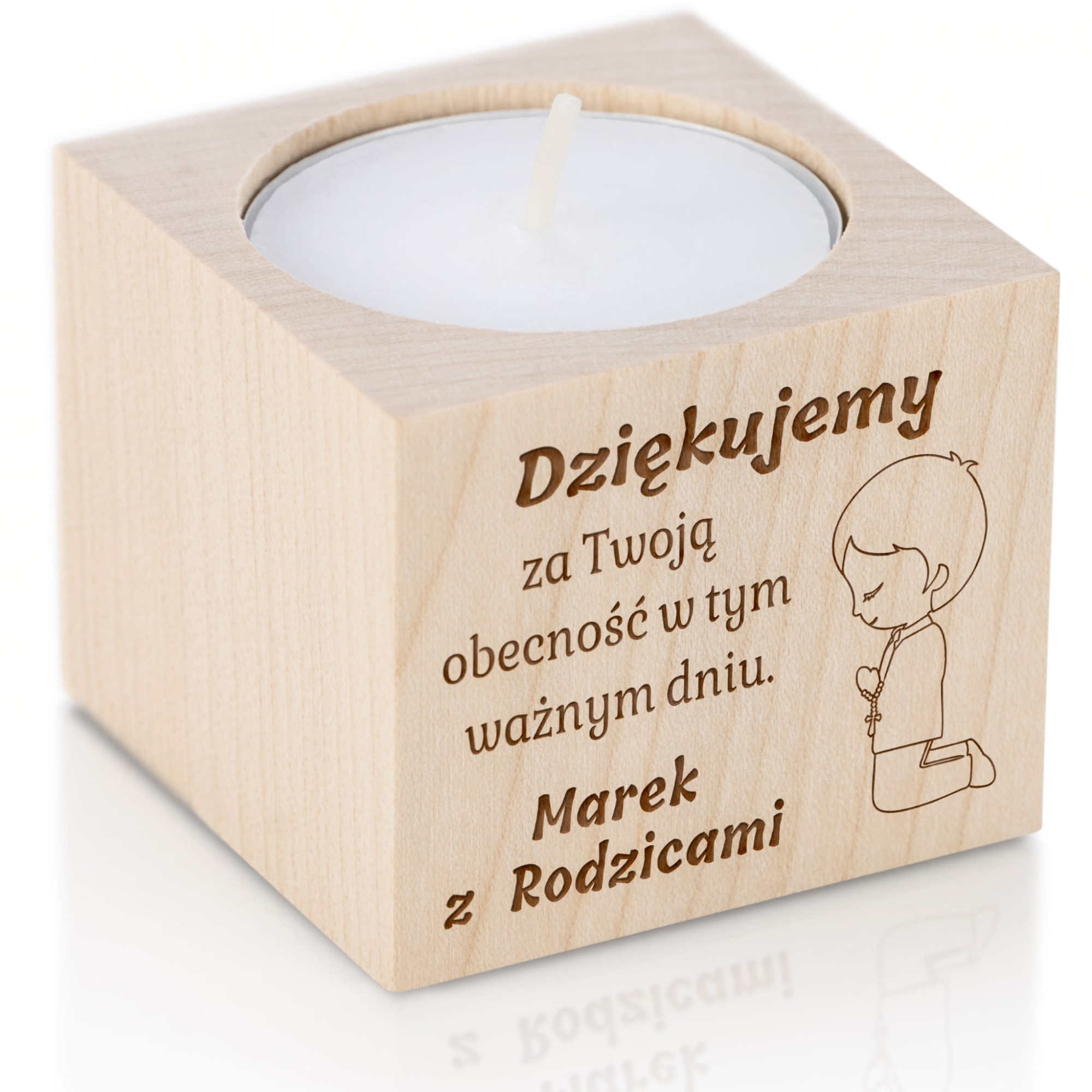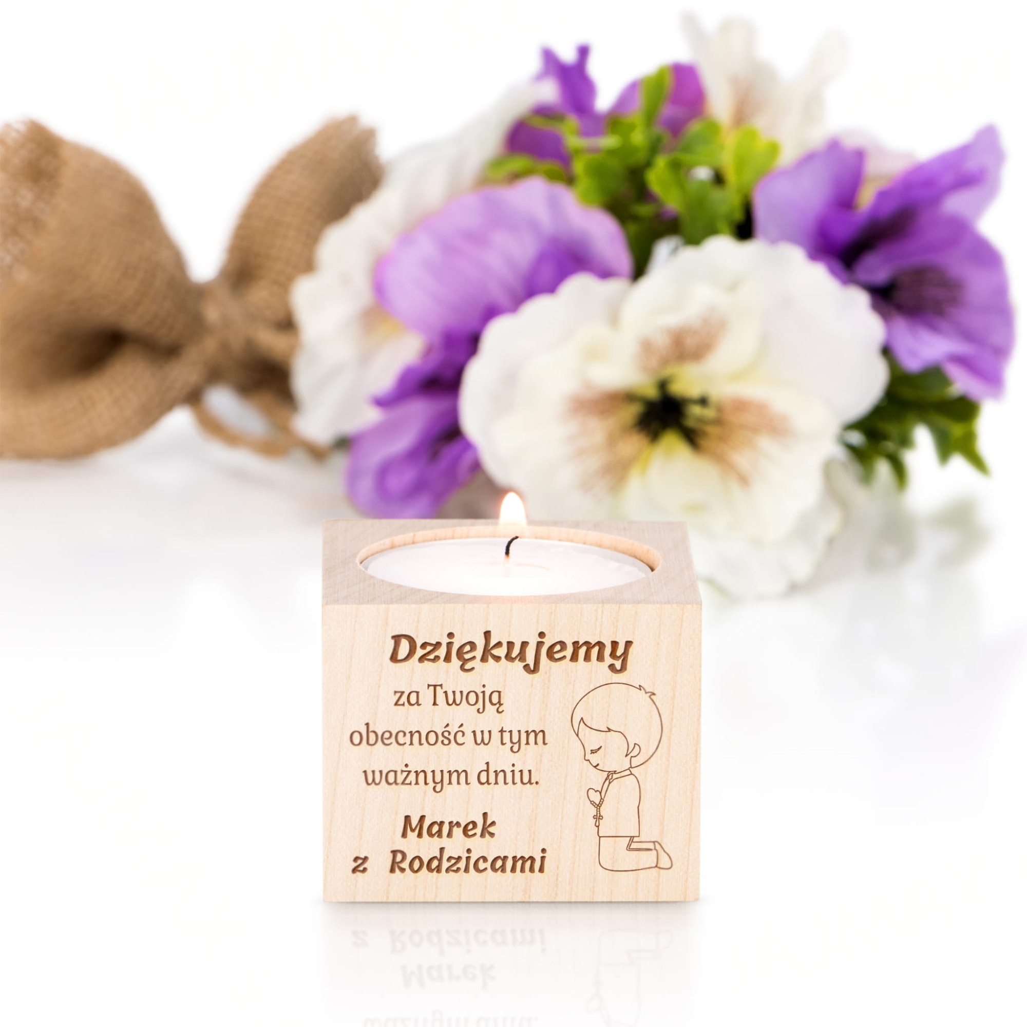 Unikalny świecznik z indywidualnym grawerem pamiątka Pierwszej Komunii