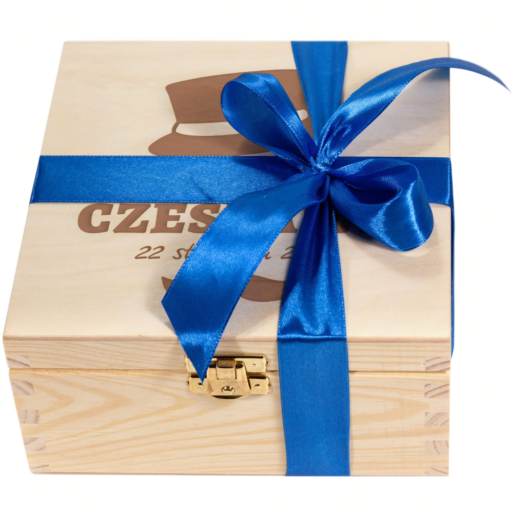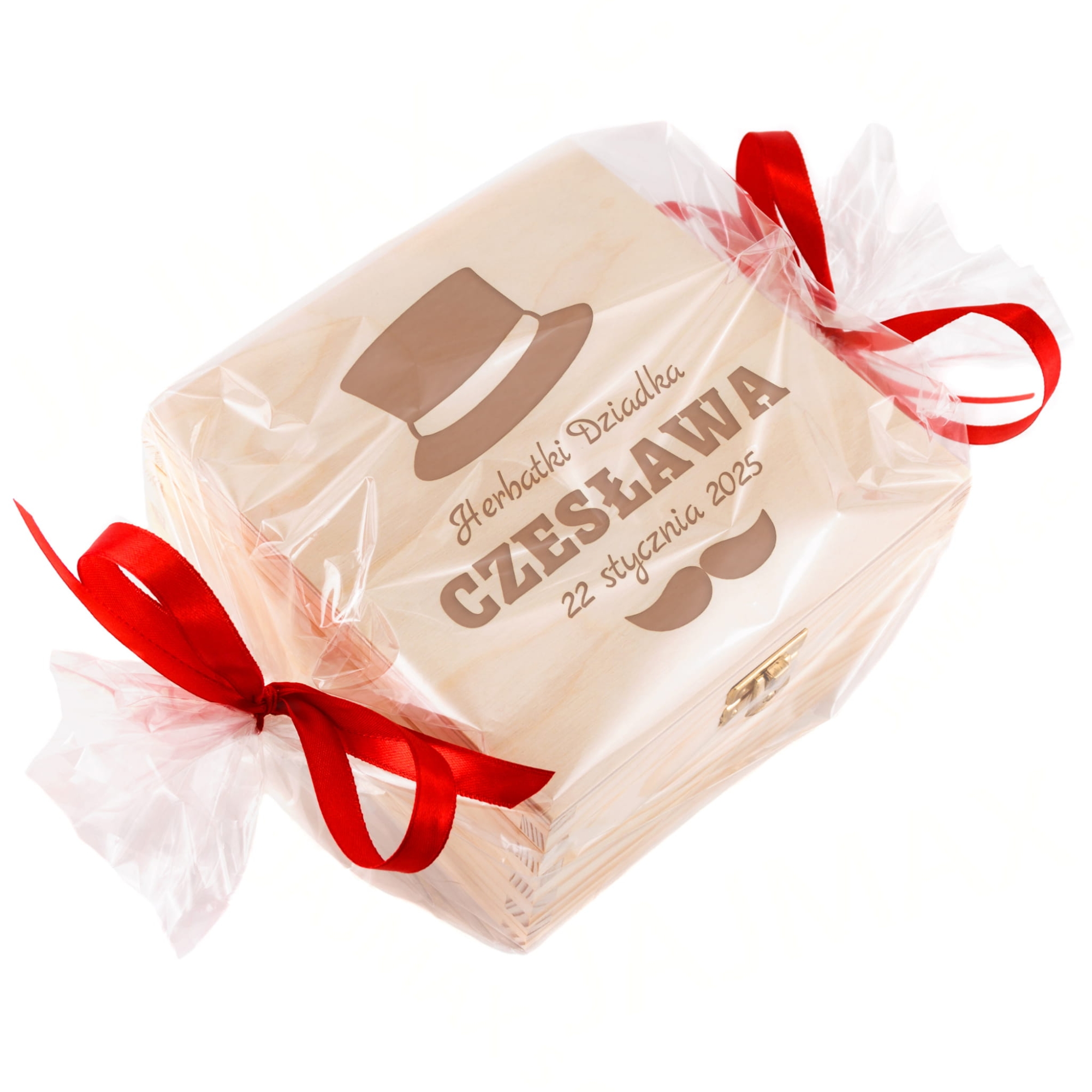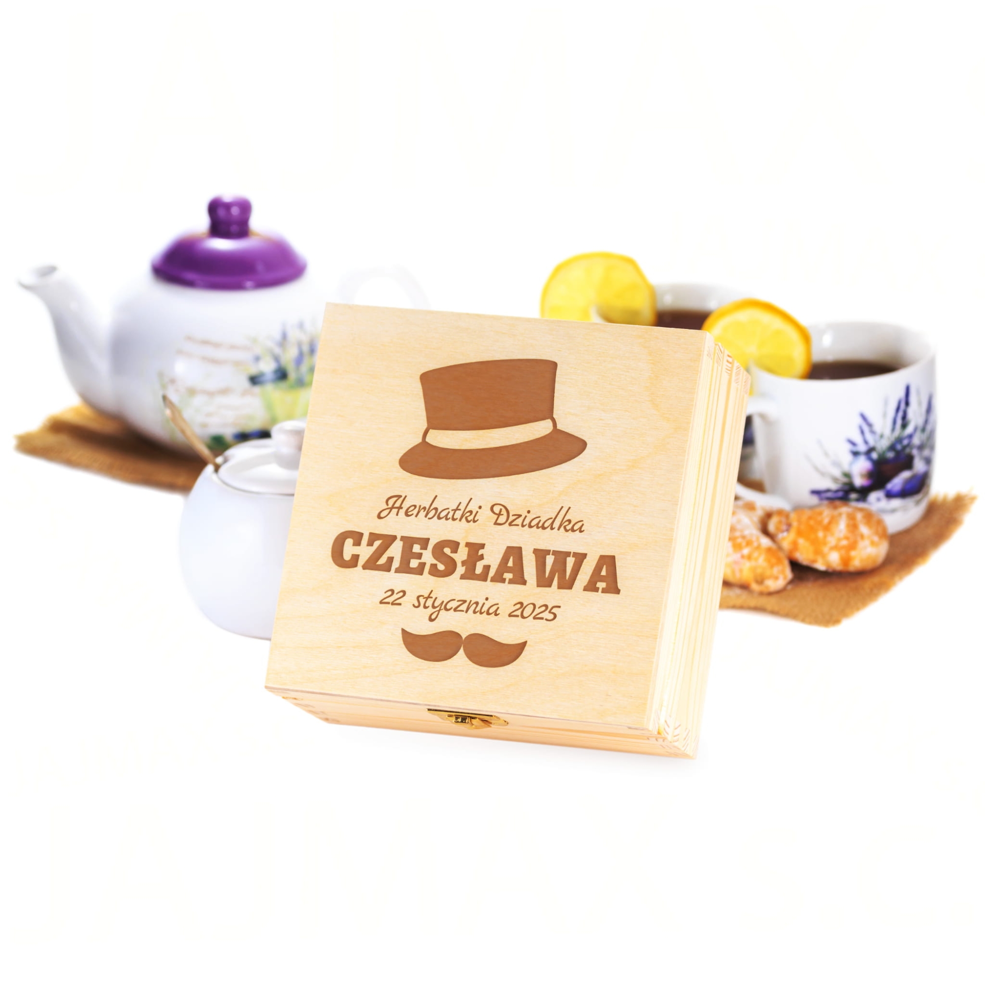 • drewniane pudełko na herbatę z indywidualnym grawerem,