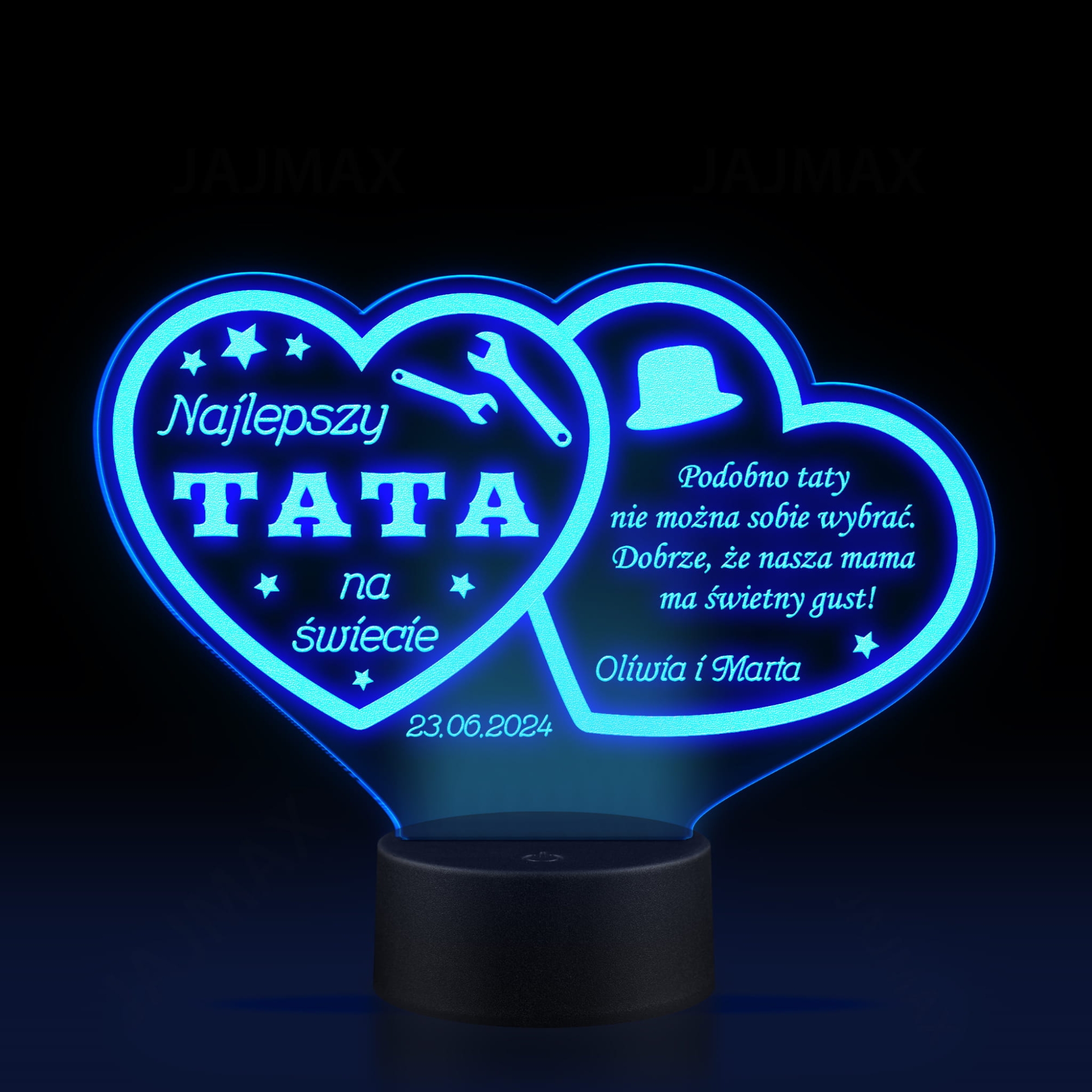 WYJĄTKOWY PREZENT DLA TATY lampka nocna LED dwa serca grawer