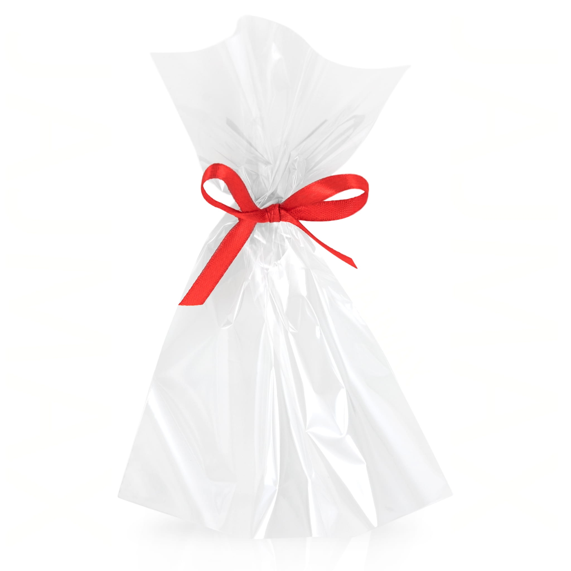Ozdobny woreczek z przeźroczystego celofanu wraz ze wstążeczką do samodzielnego zapakowania na prezent.