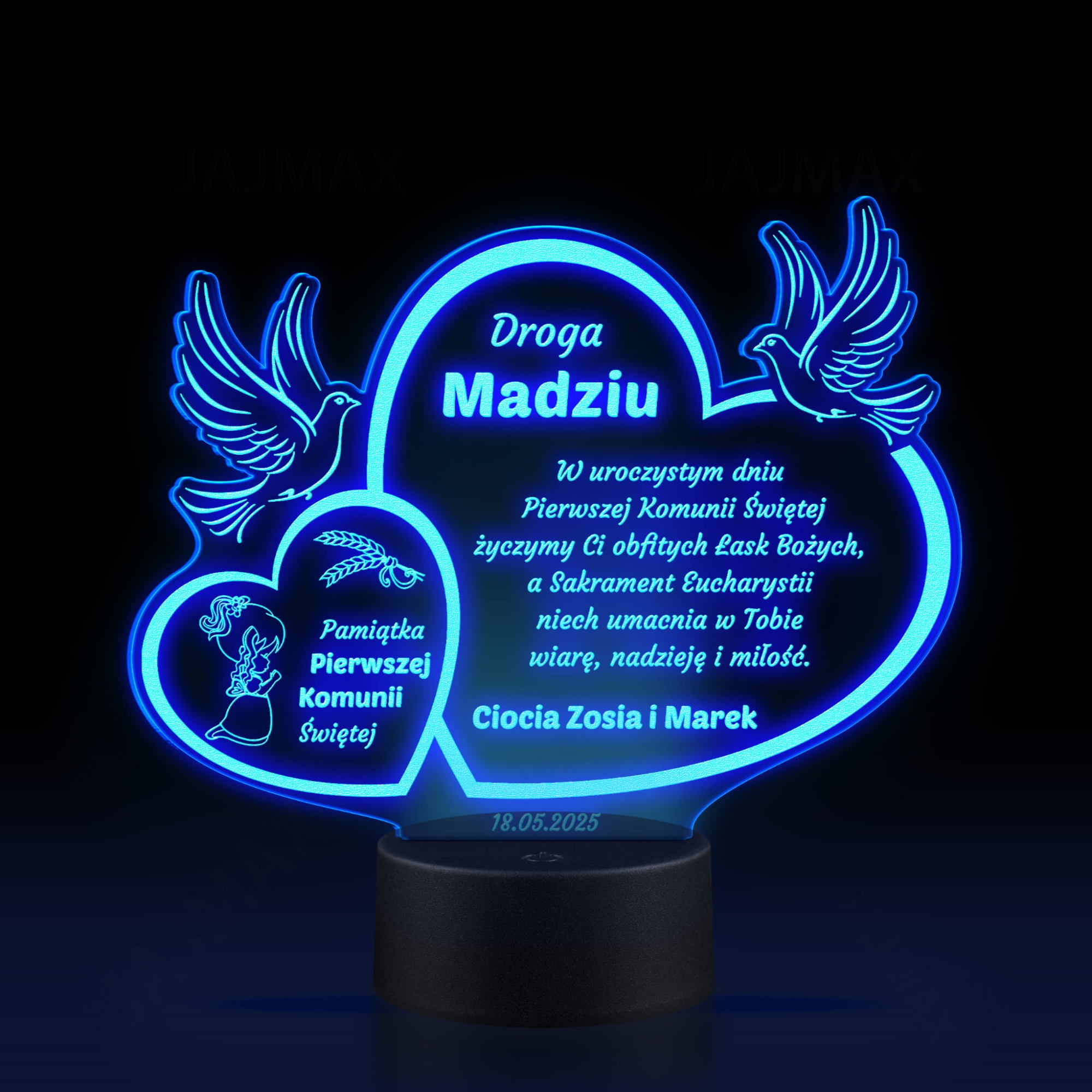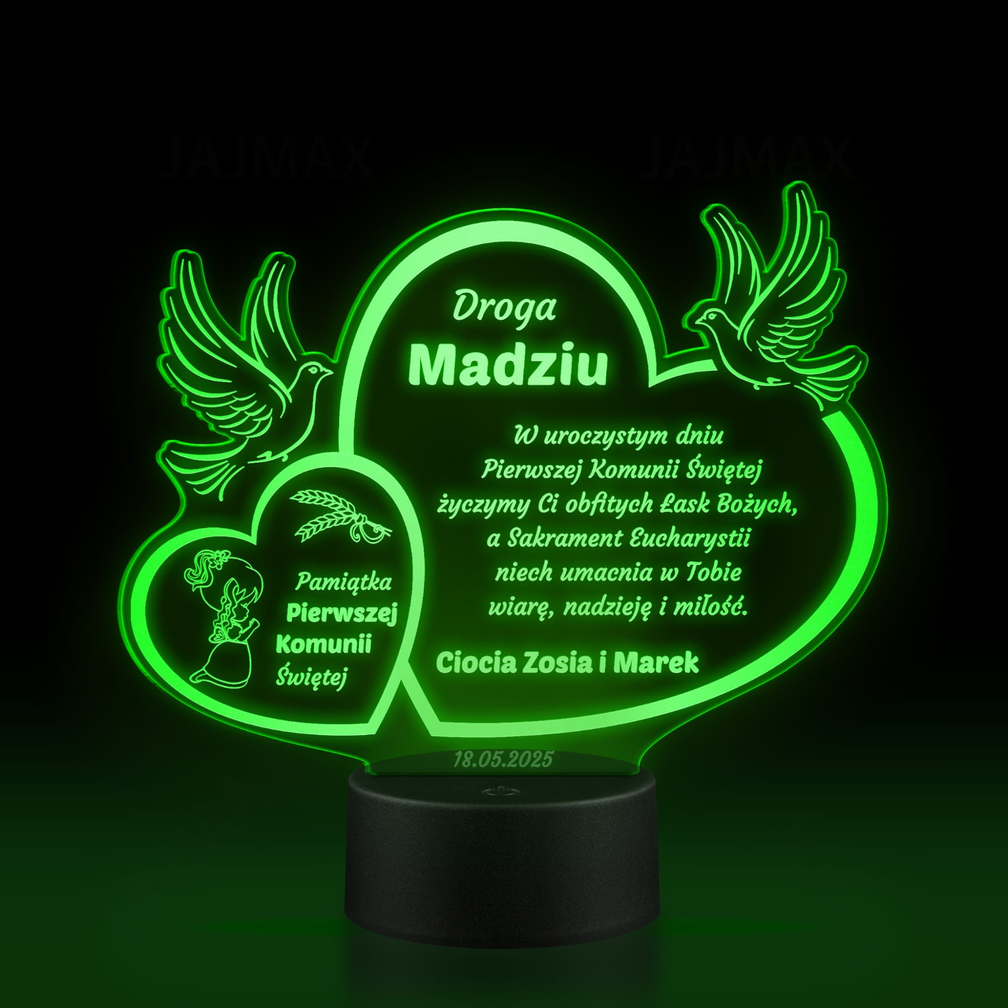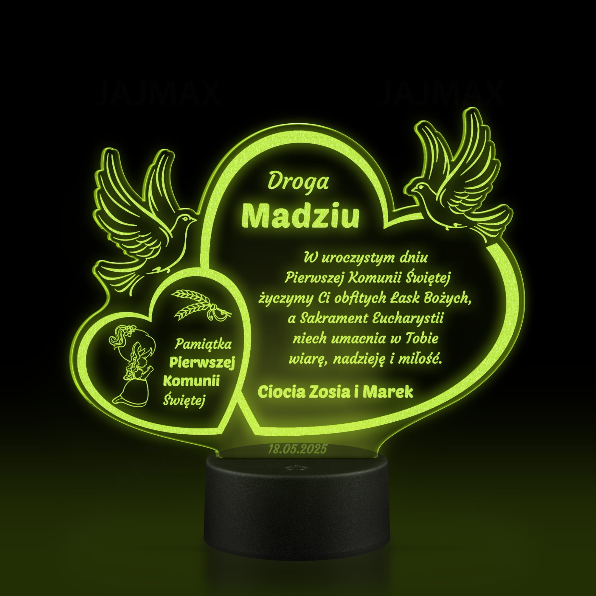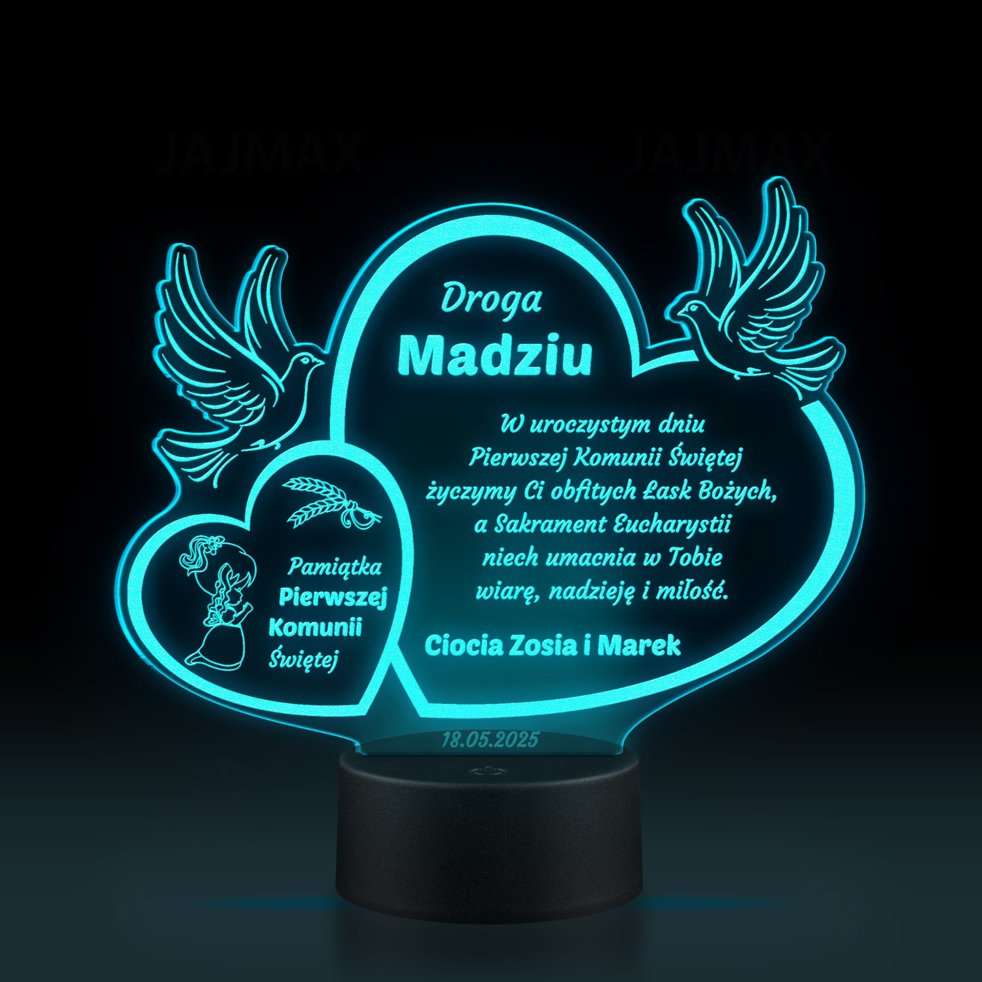 Wyjątkowa statuetka LED z indywidualnym grawerem jako niezapomniana pamiątka komunii dla dziewczynki