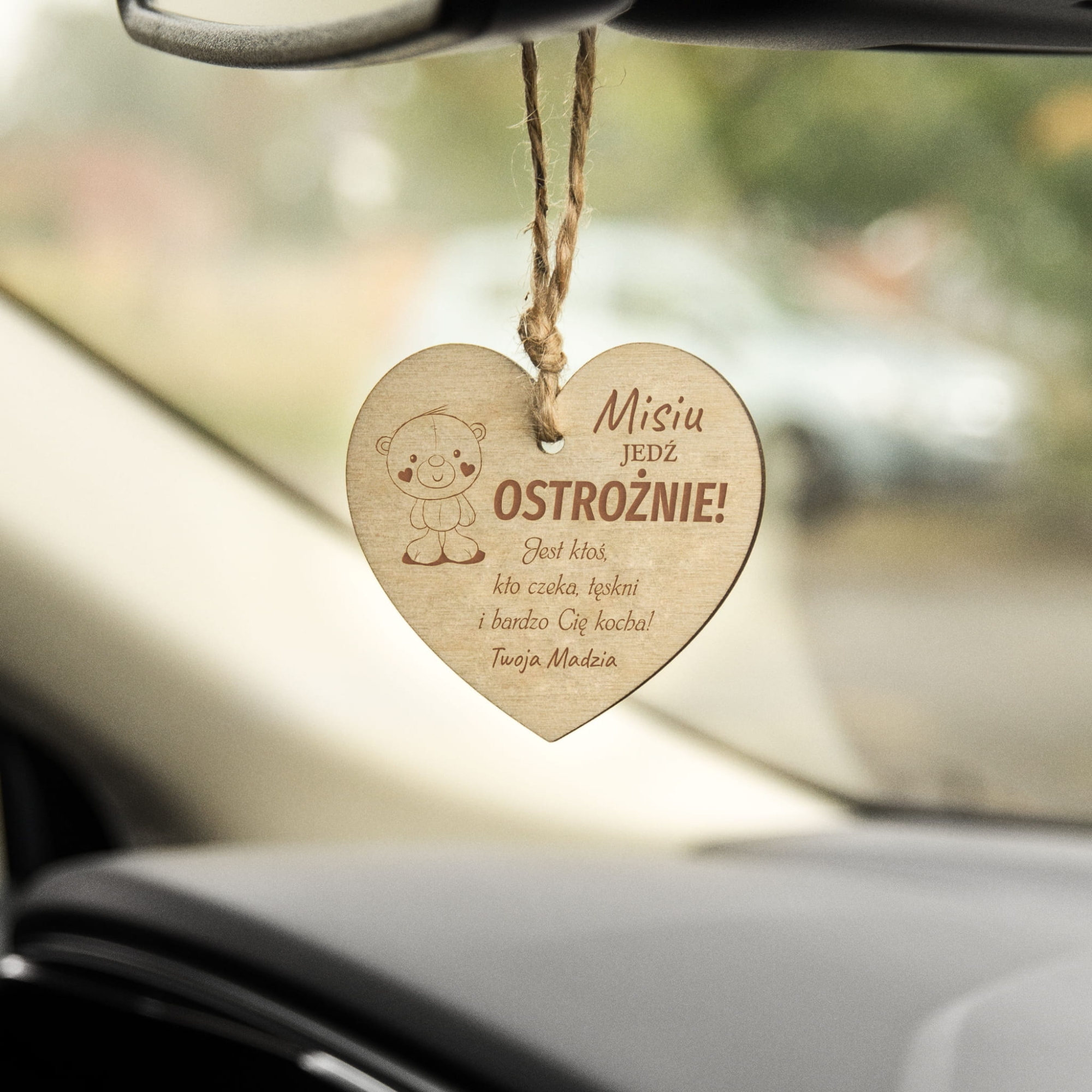 Zawieszka do auta serce - jedź ostrożnie super pomysł na upominek dla Niego