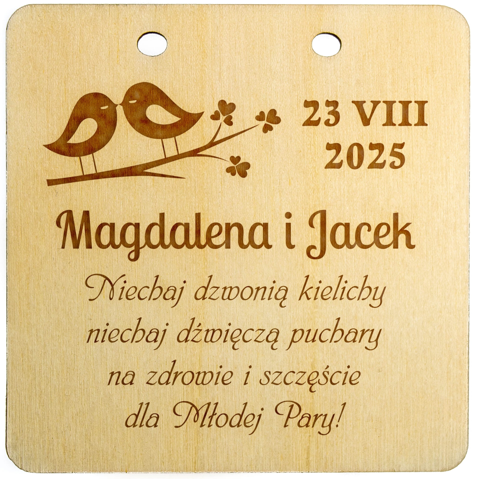 Zawieszki ślubne kwadrat z indywidualnym grawerem ślub wesele