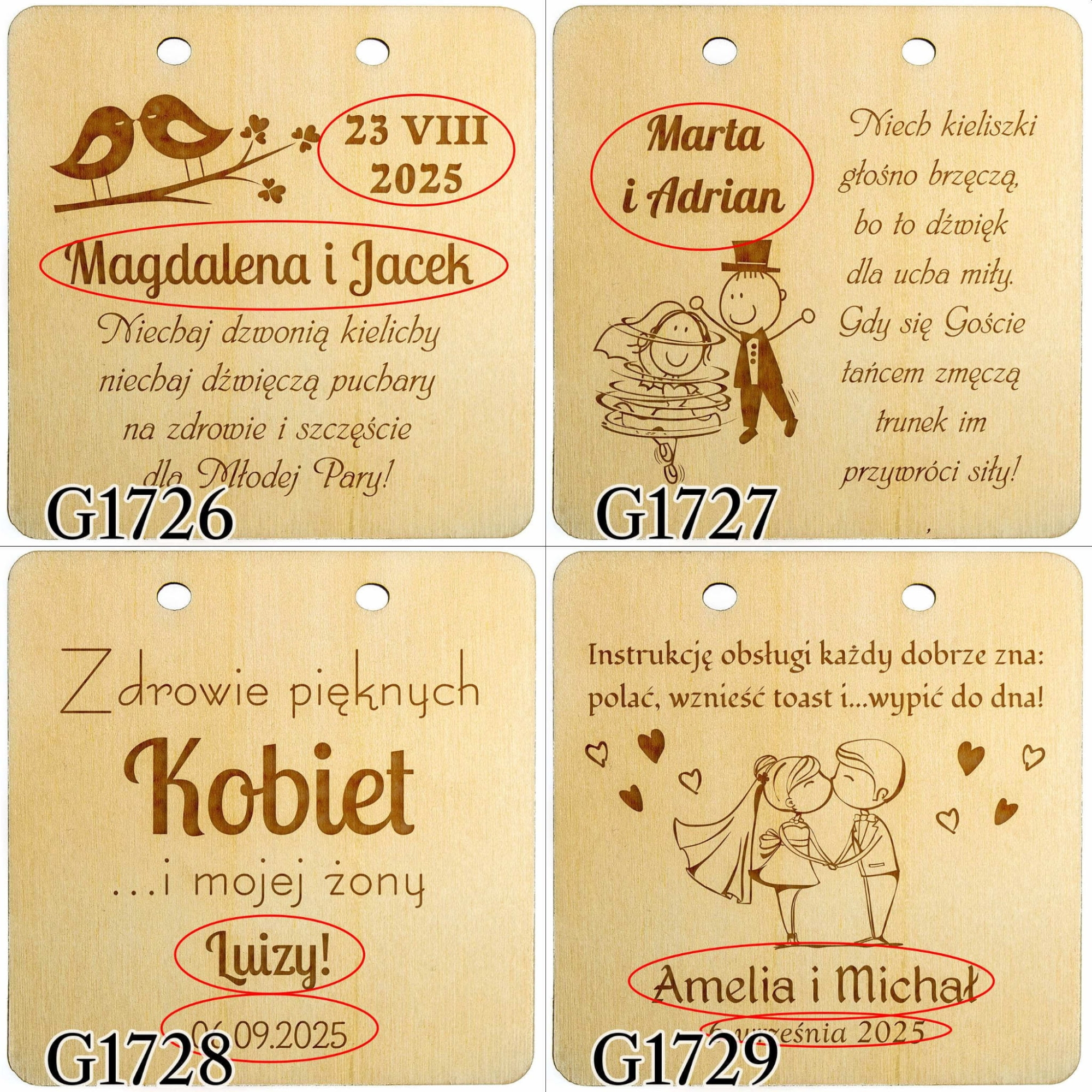 - wyślij do nas tekst w formie dokładnie takiej, jaka ma zostać umieszczona na produkcie tj. z zastosowaniem odpowiedniej pisowni, interpunkcji, odmiany imion itp.