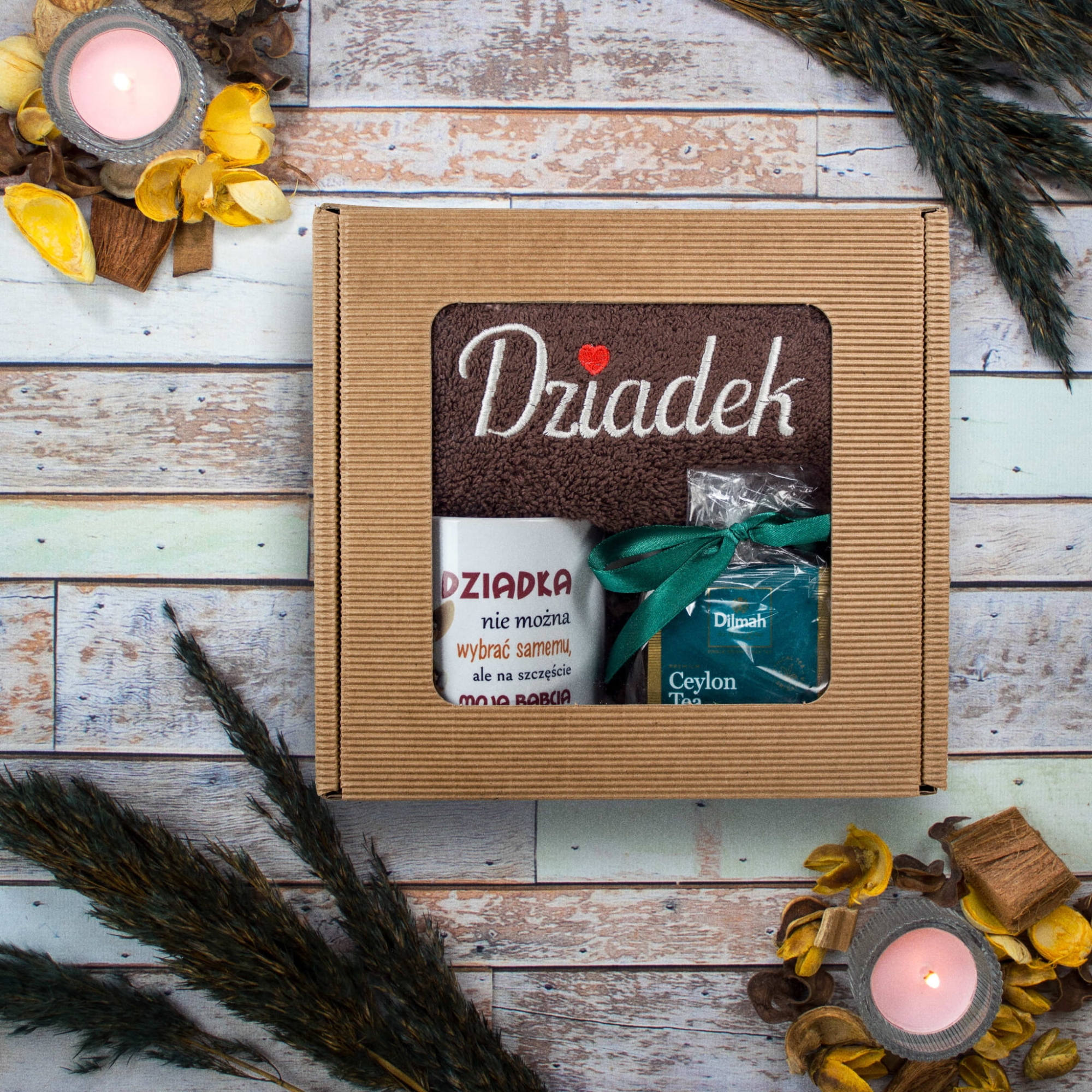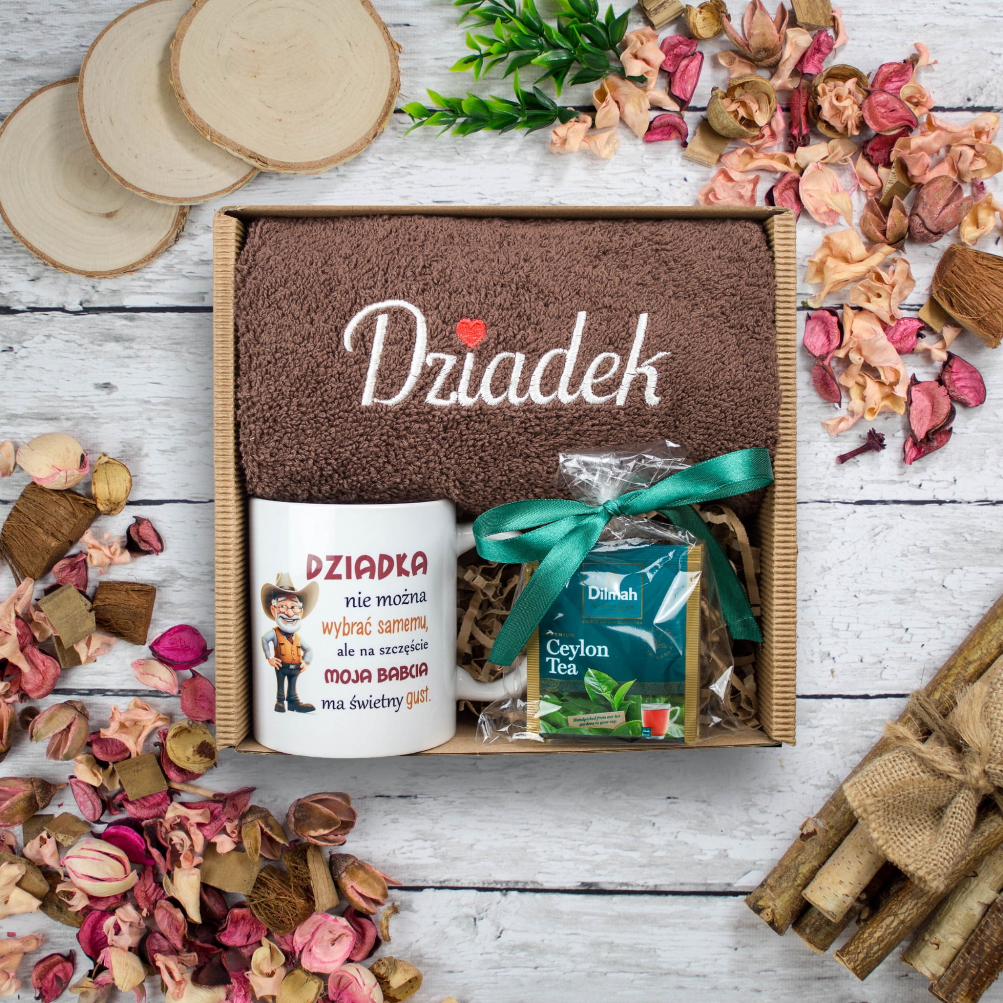 RĘCZNIK KUBEK HERBATA ZESTAW UPOMINKOWY DLA DZIADKA