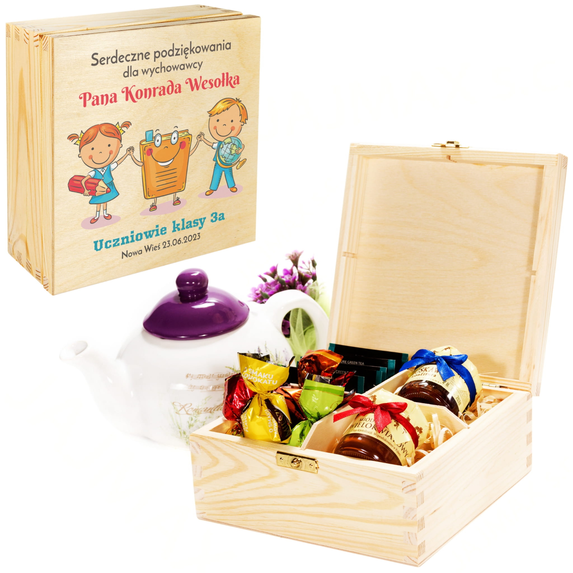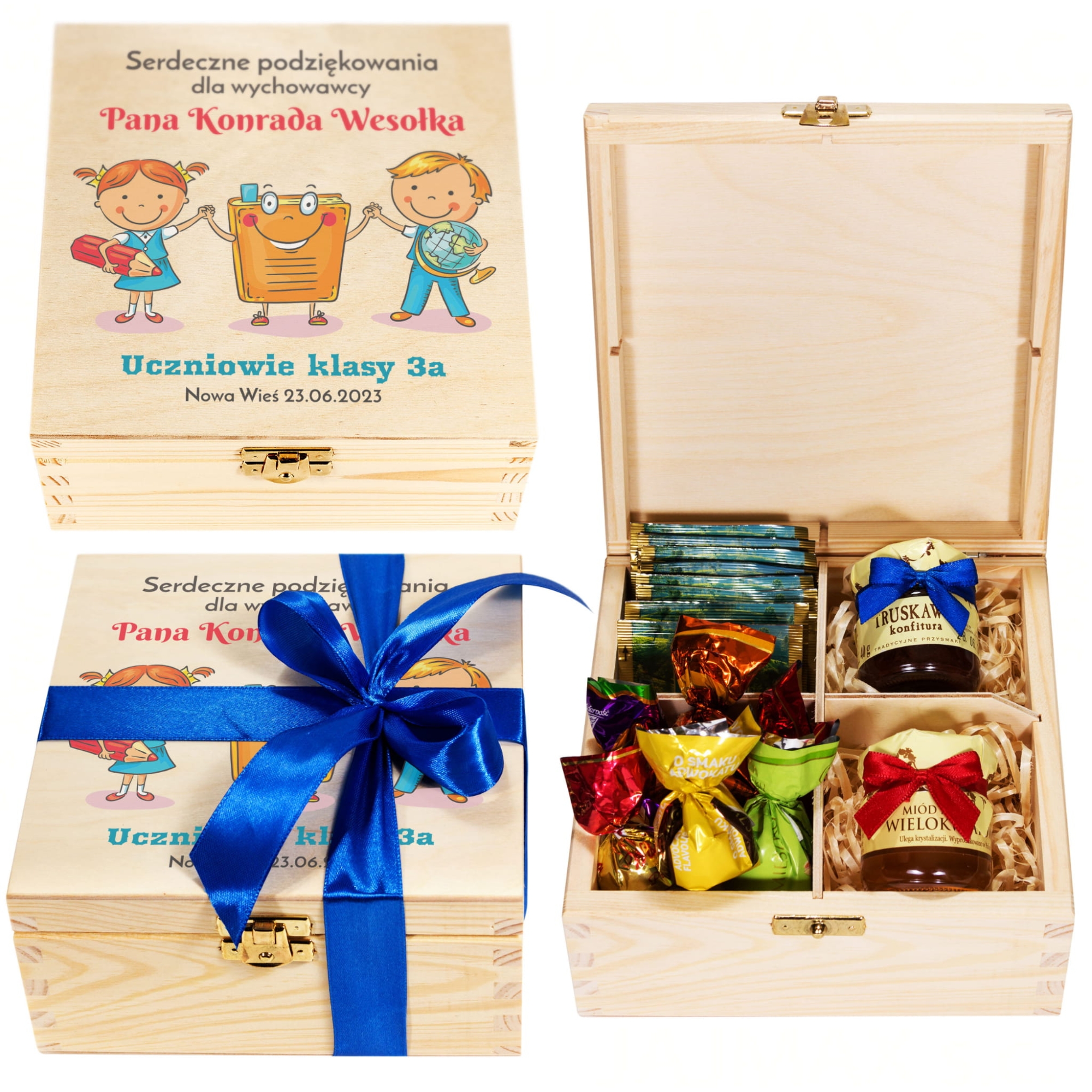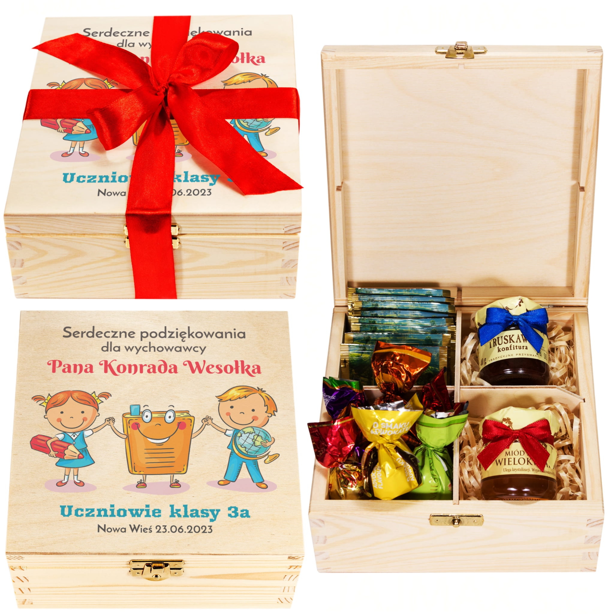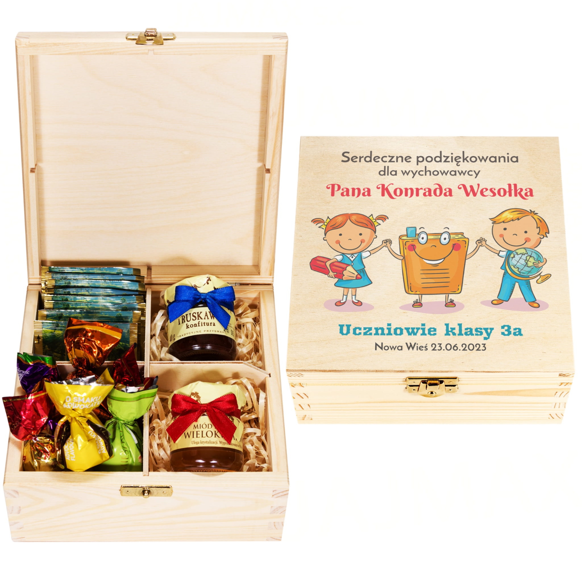 ZESTAW UPOMINKOWY DLA NAUCZYCIELA Z DEDYKACJĄ miód herbata praliny