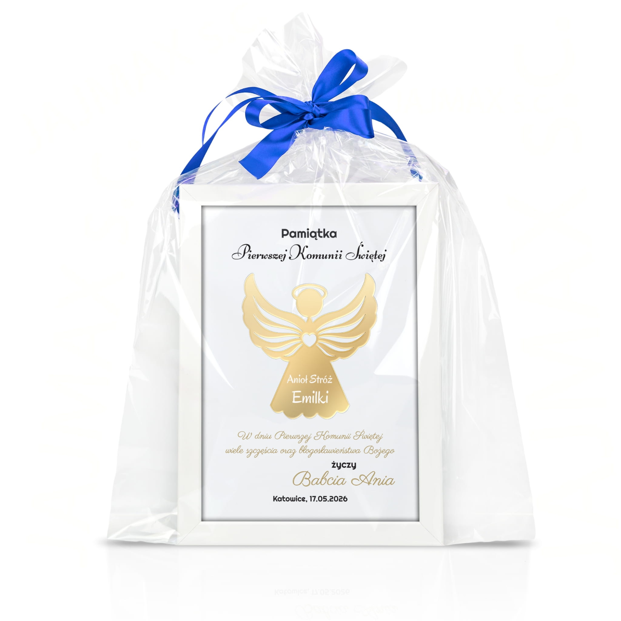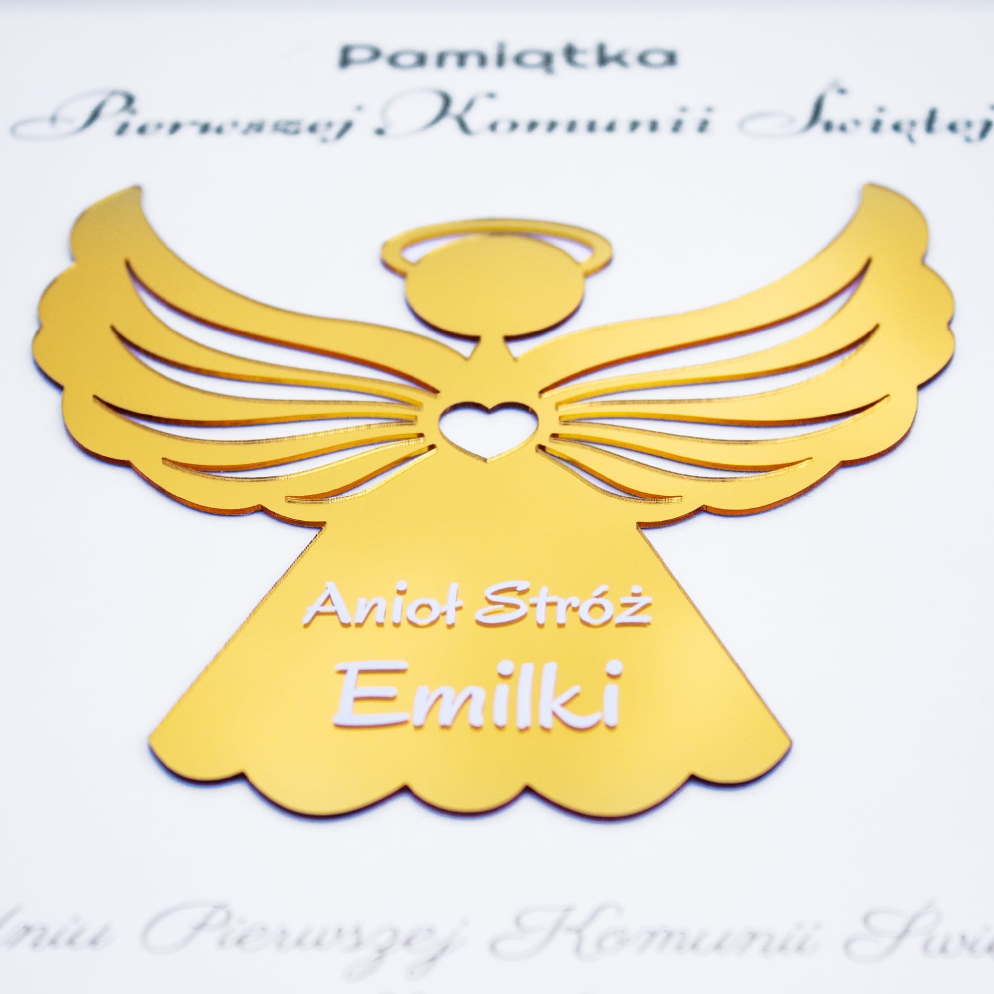 ZŁOTY ANIOŁ STRÓŻ w ramce wyjątkowy prezent na Komunię