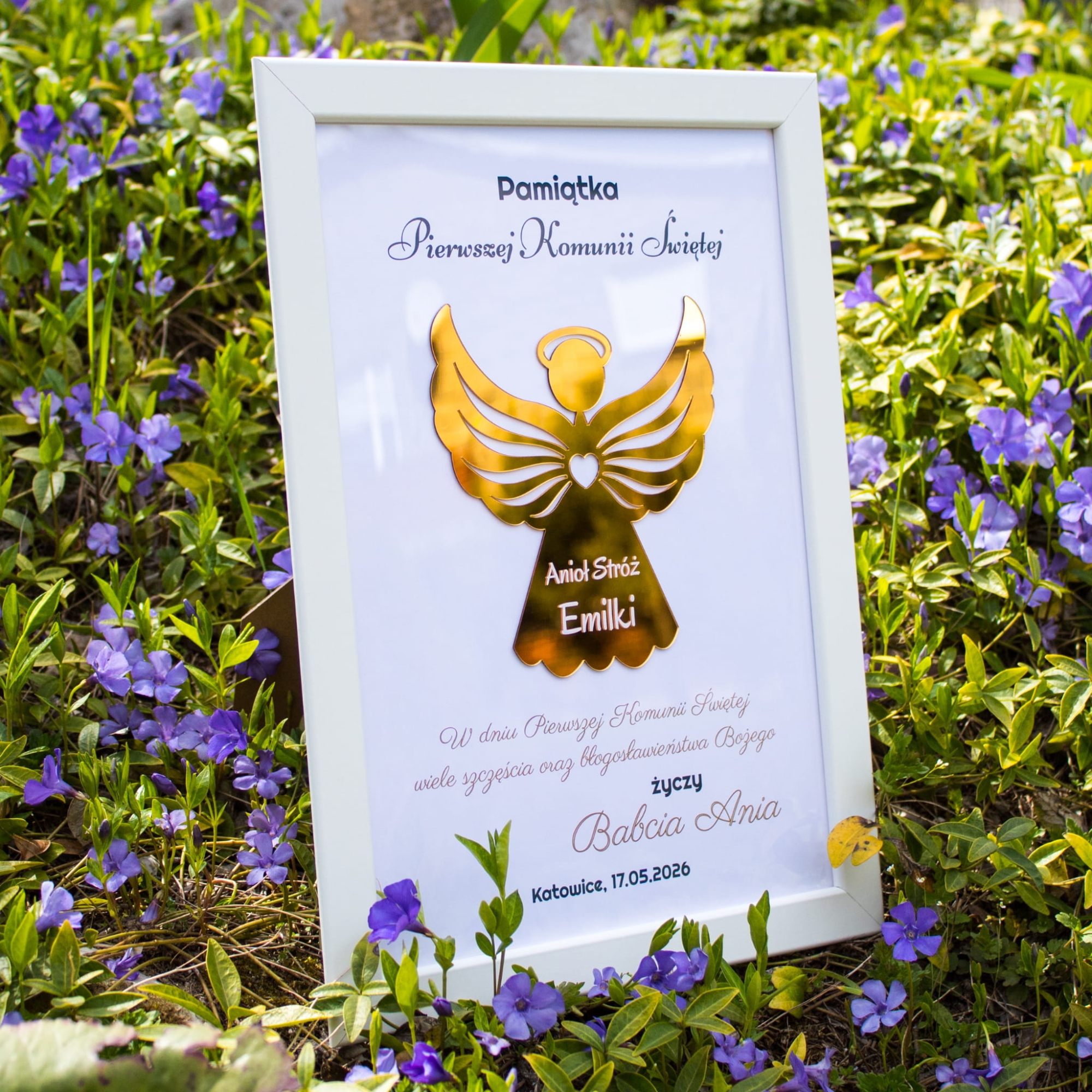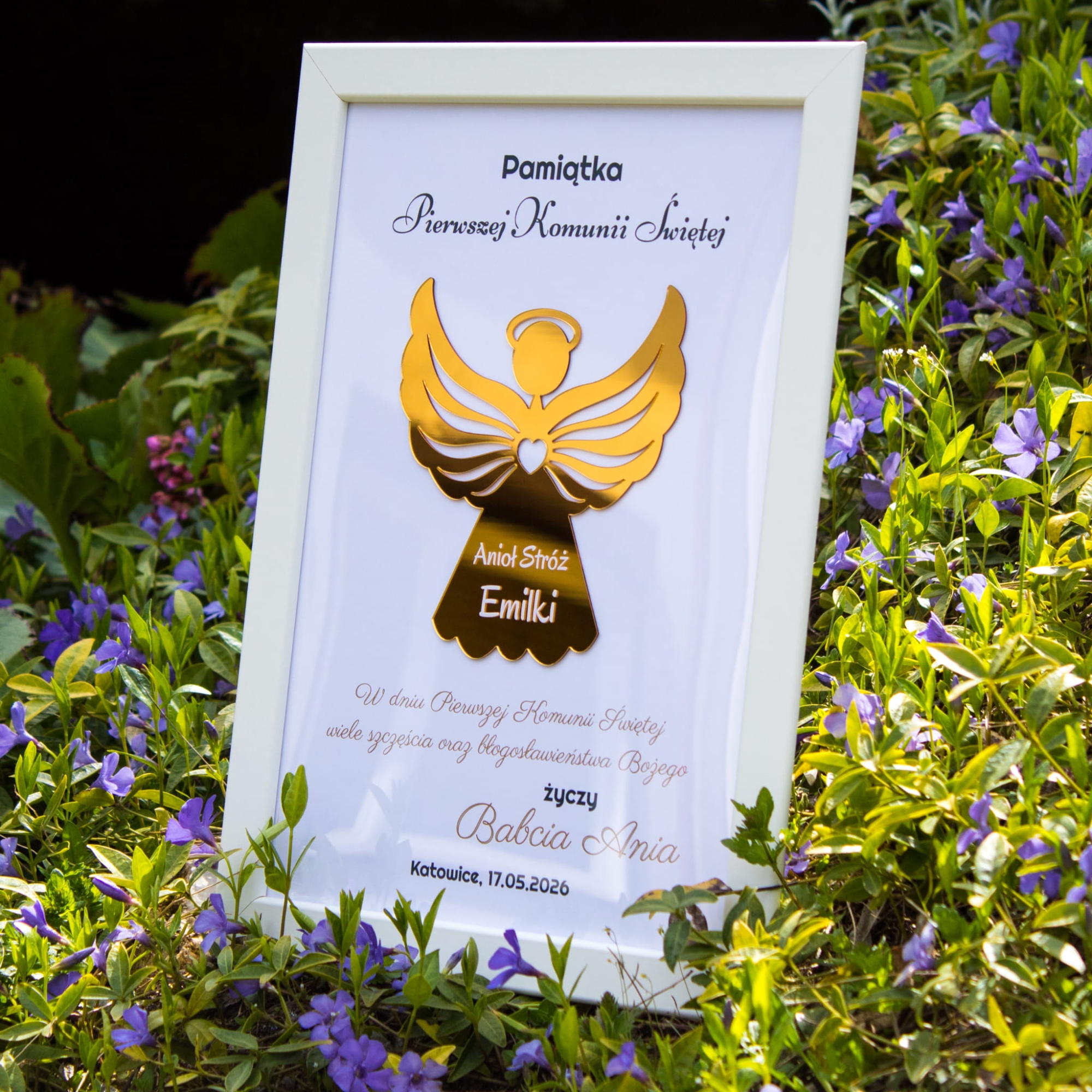 Złoty Anioł Stróż w ramce – wyjątkowy prezent na Komunię