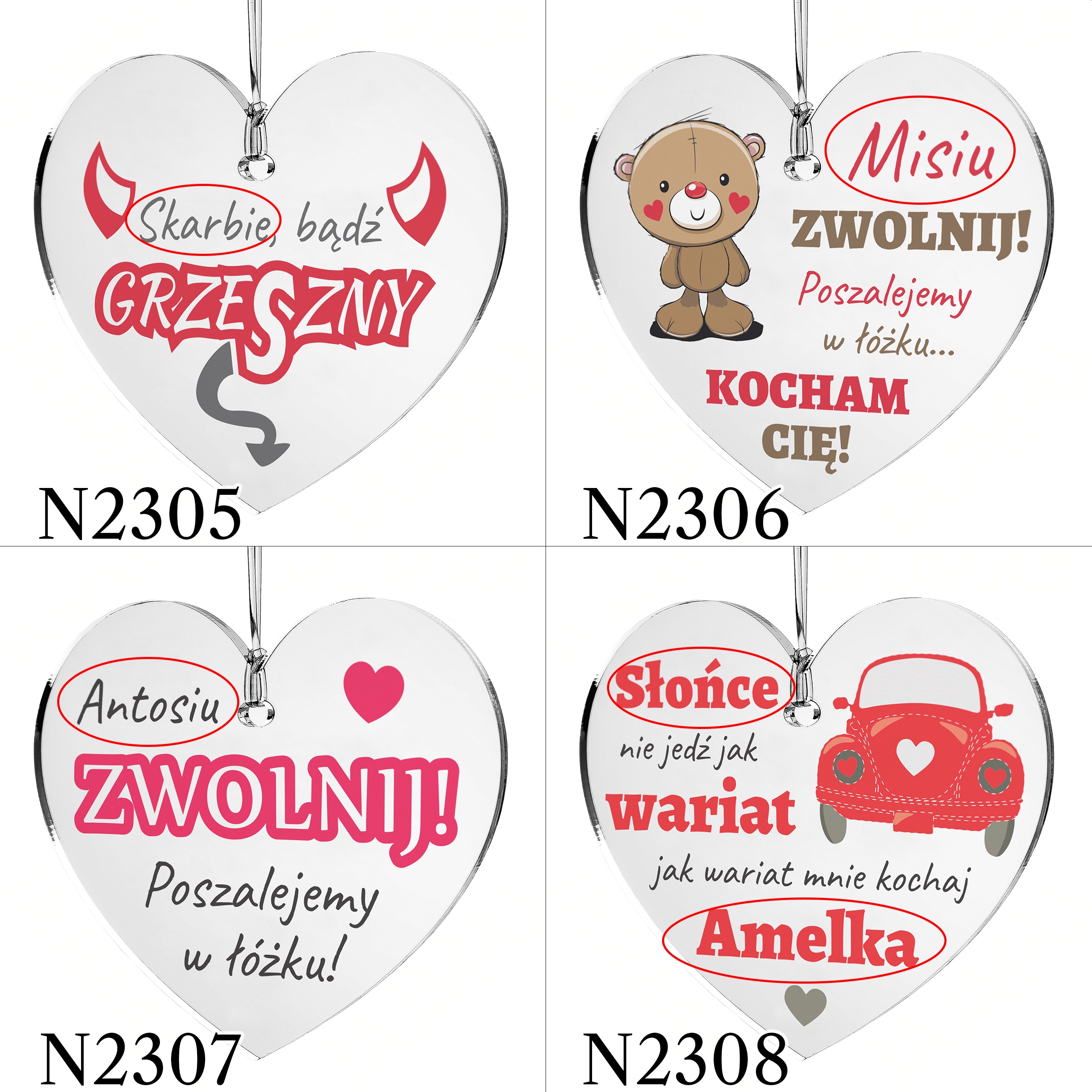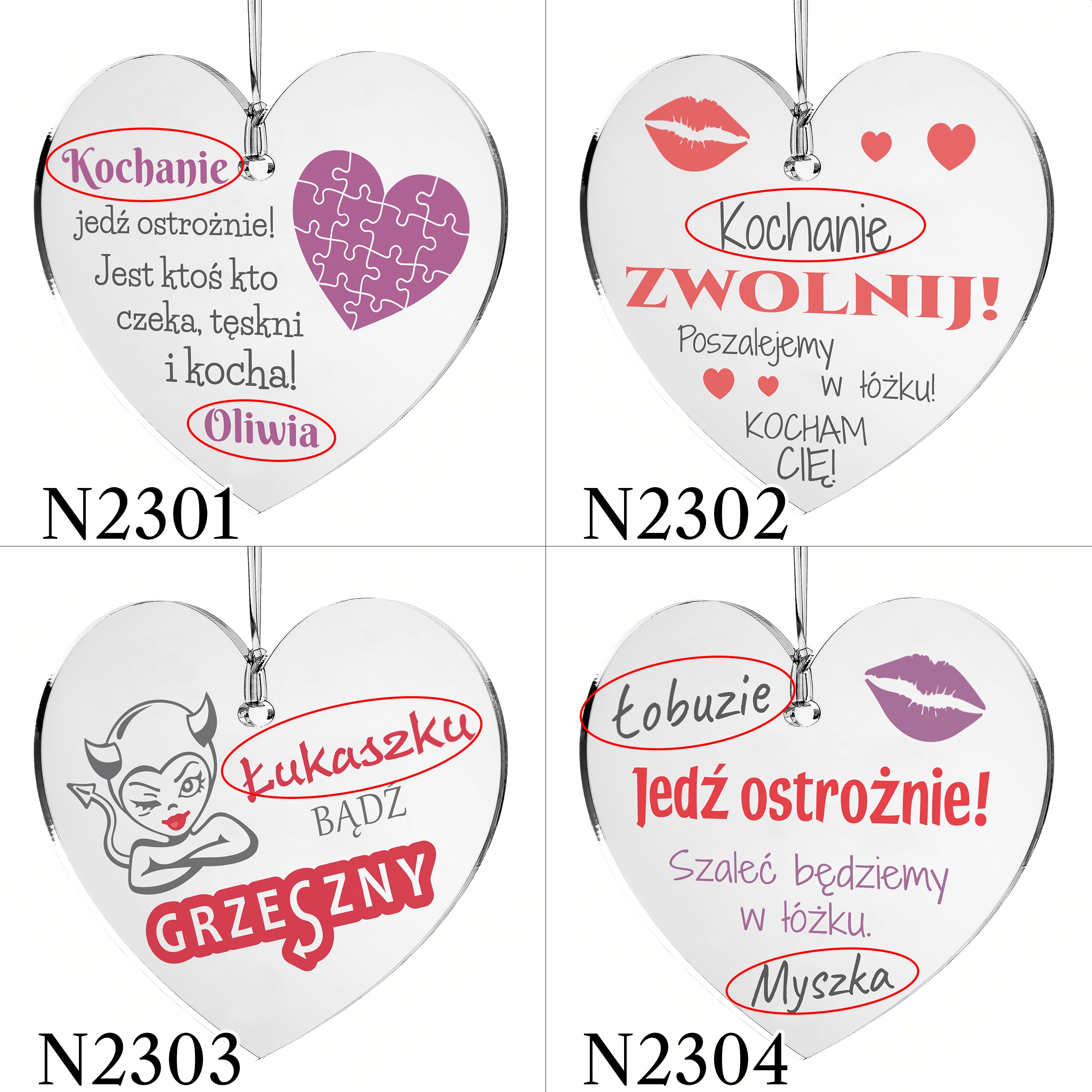- wyślij do nas tekst w formie dokładnie takiej, jaka ma zostać umieszczona na produkcie tj. z zastosowaniem odpowiedniej pisowni, interpunkcji, odmiany imion itp.