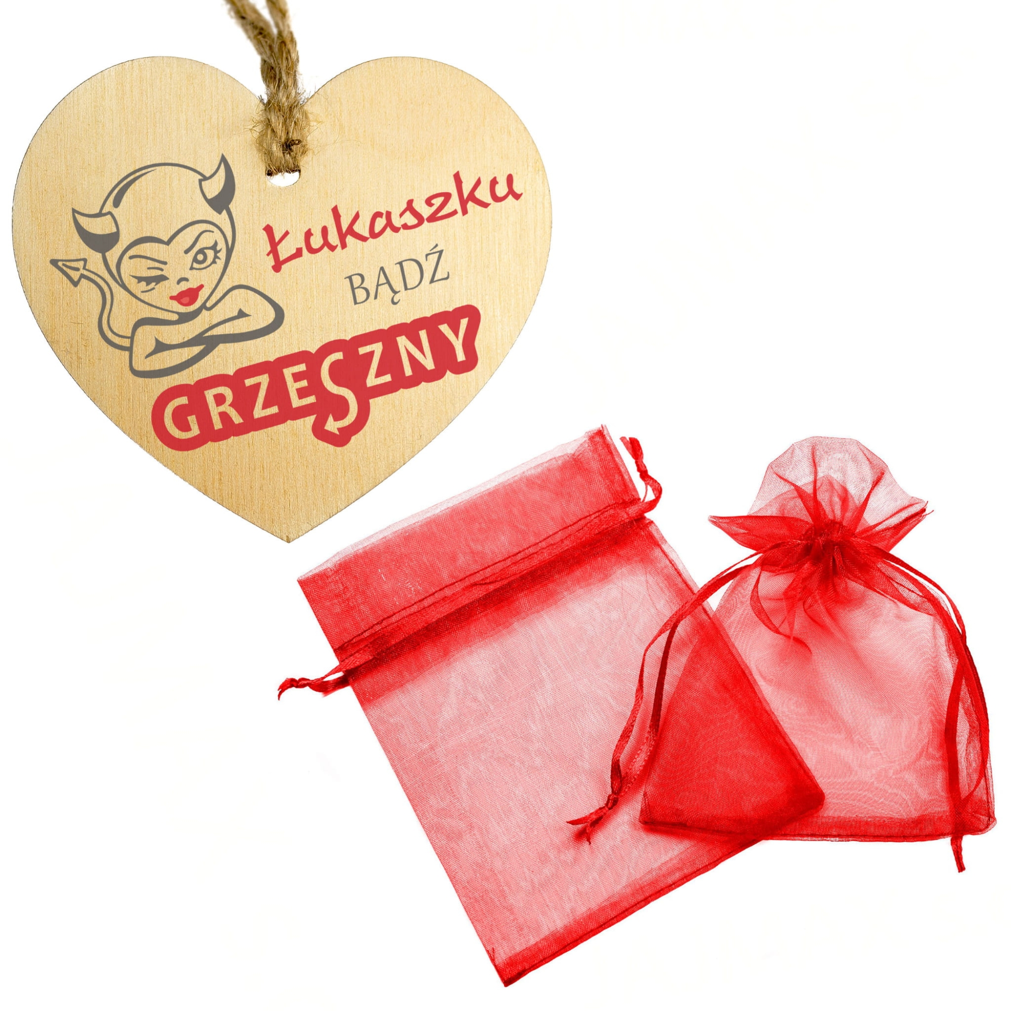 Zawieszka do auta serce ZABAWNY NAPIS diabełek prezent na Walentynki