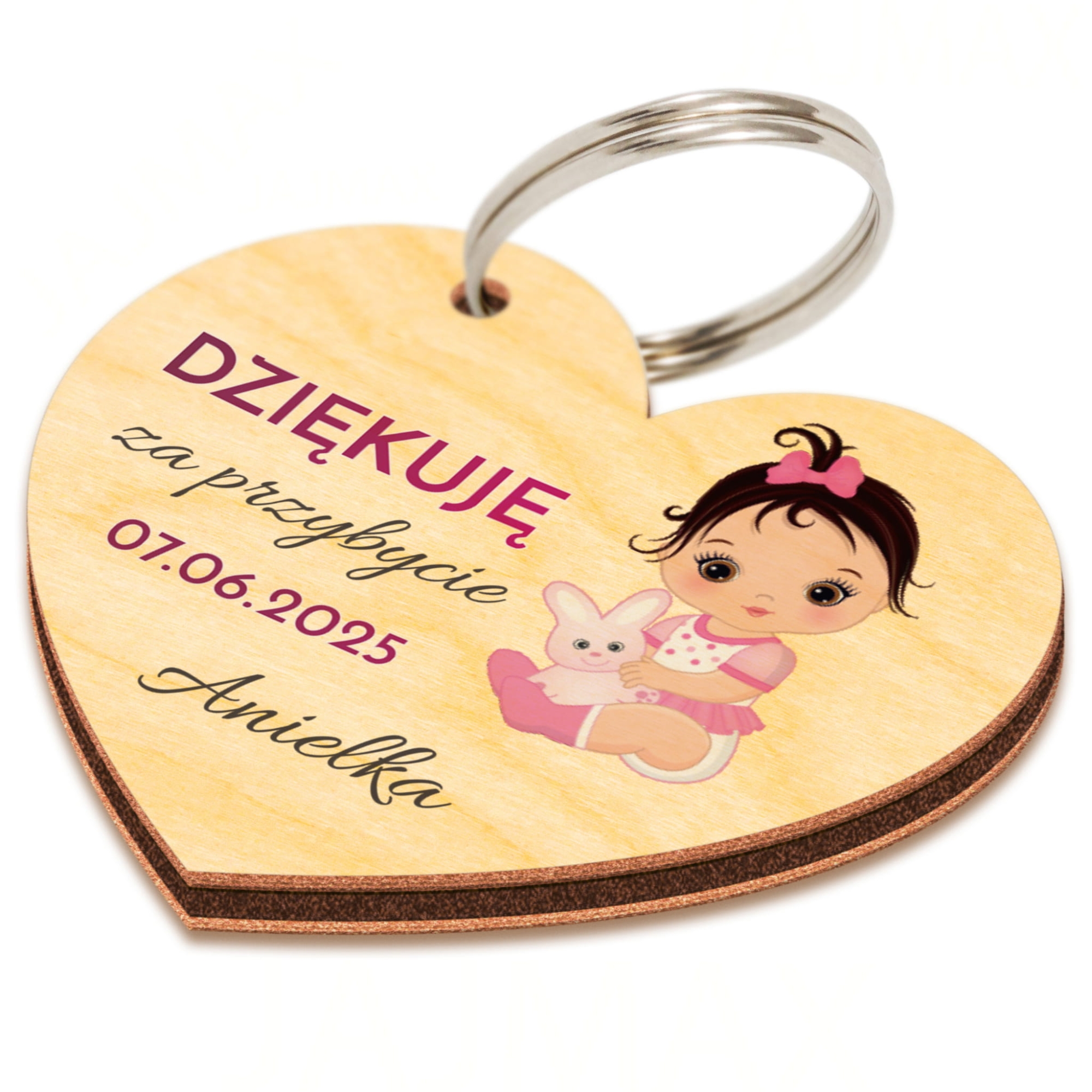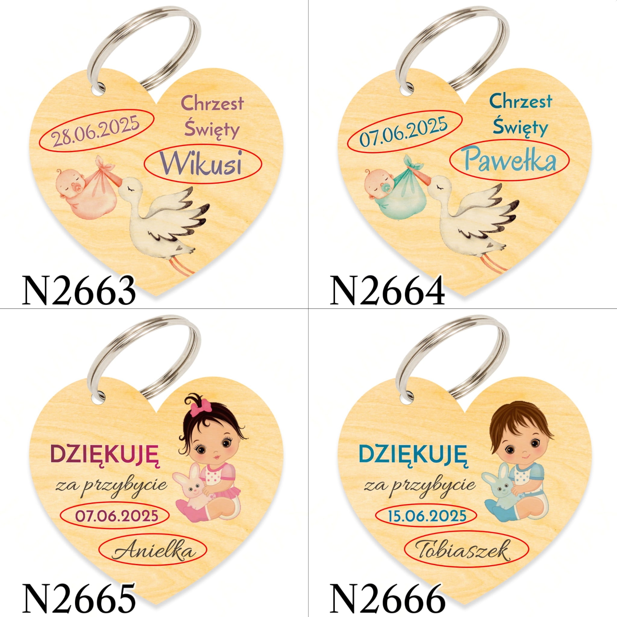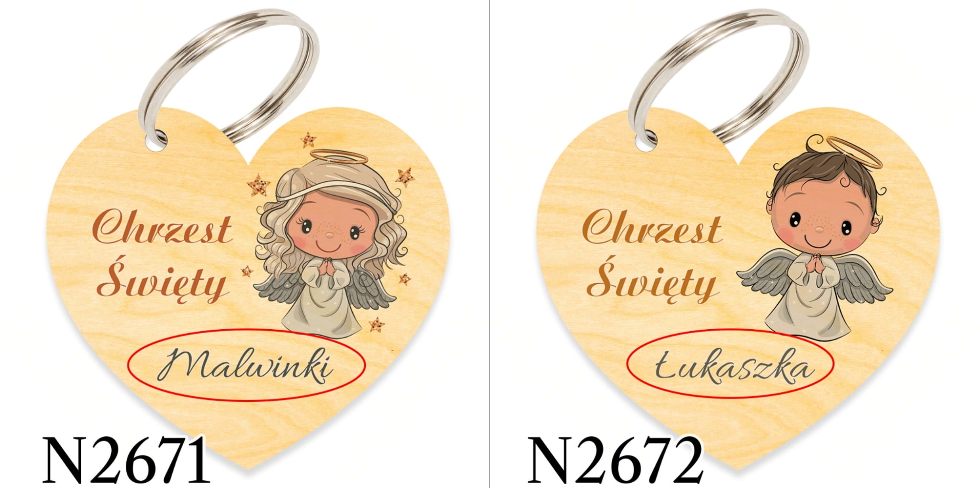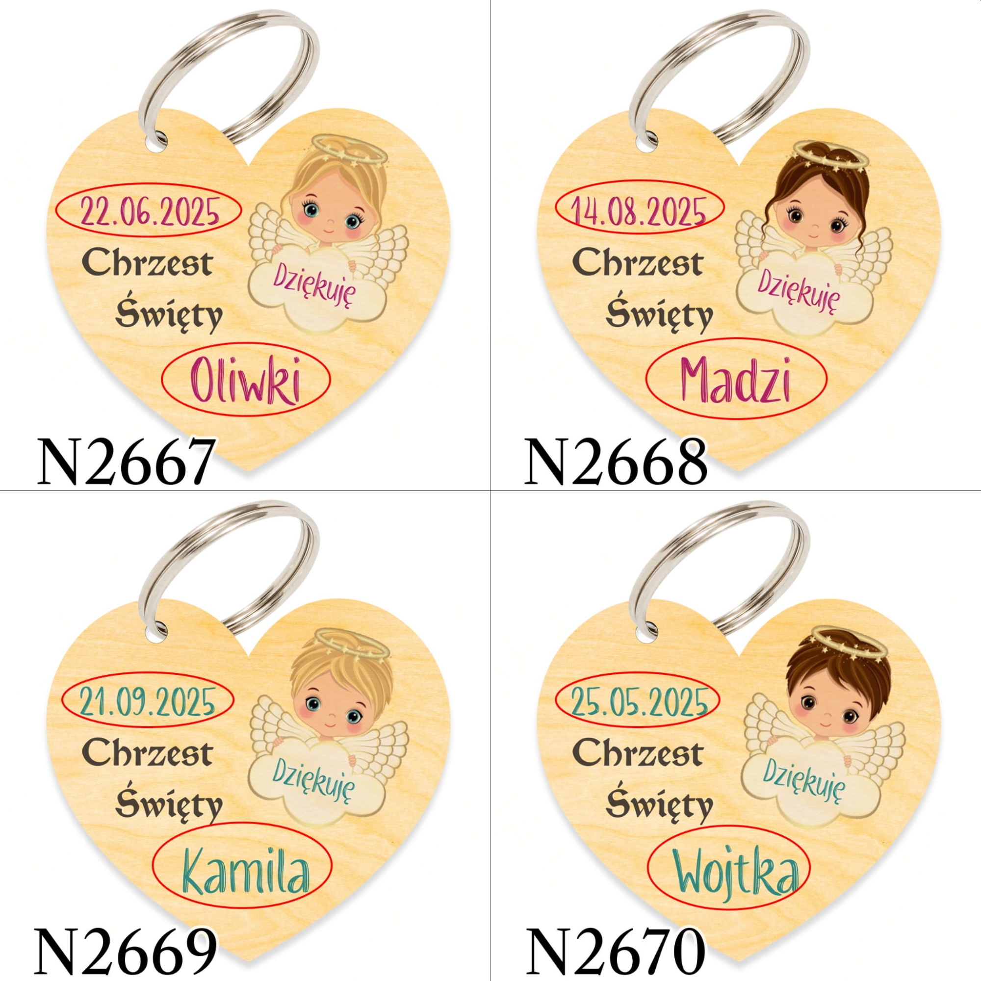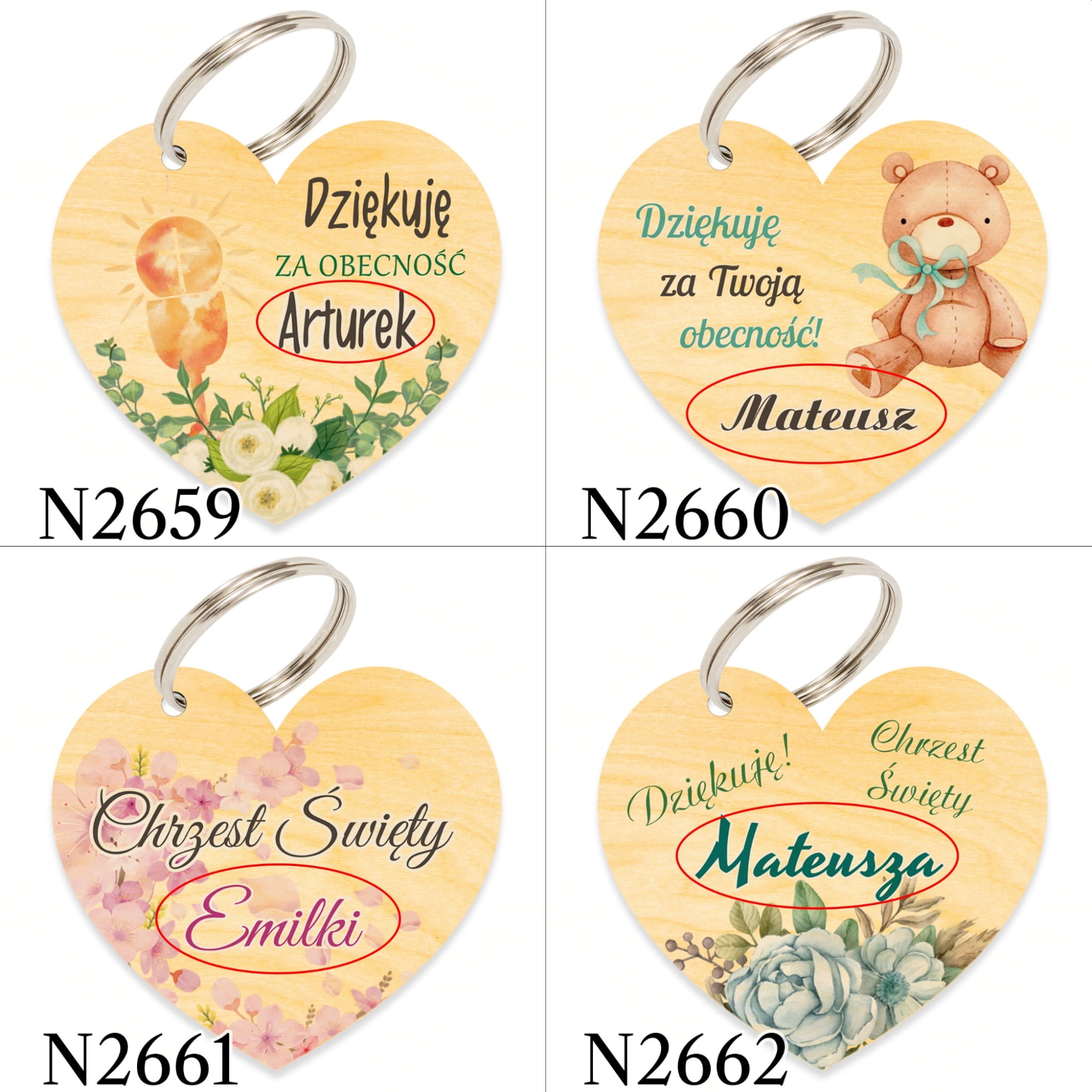Zestaw upominkowy cukierki i brelok serce z nadrukiem, upominki dla gości Chrzest Święty