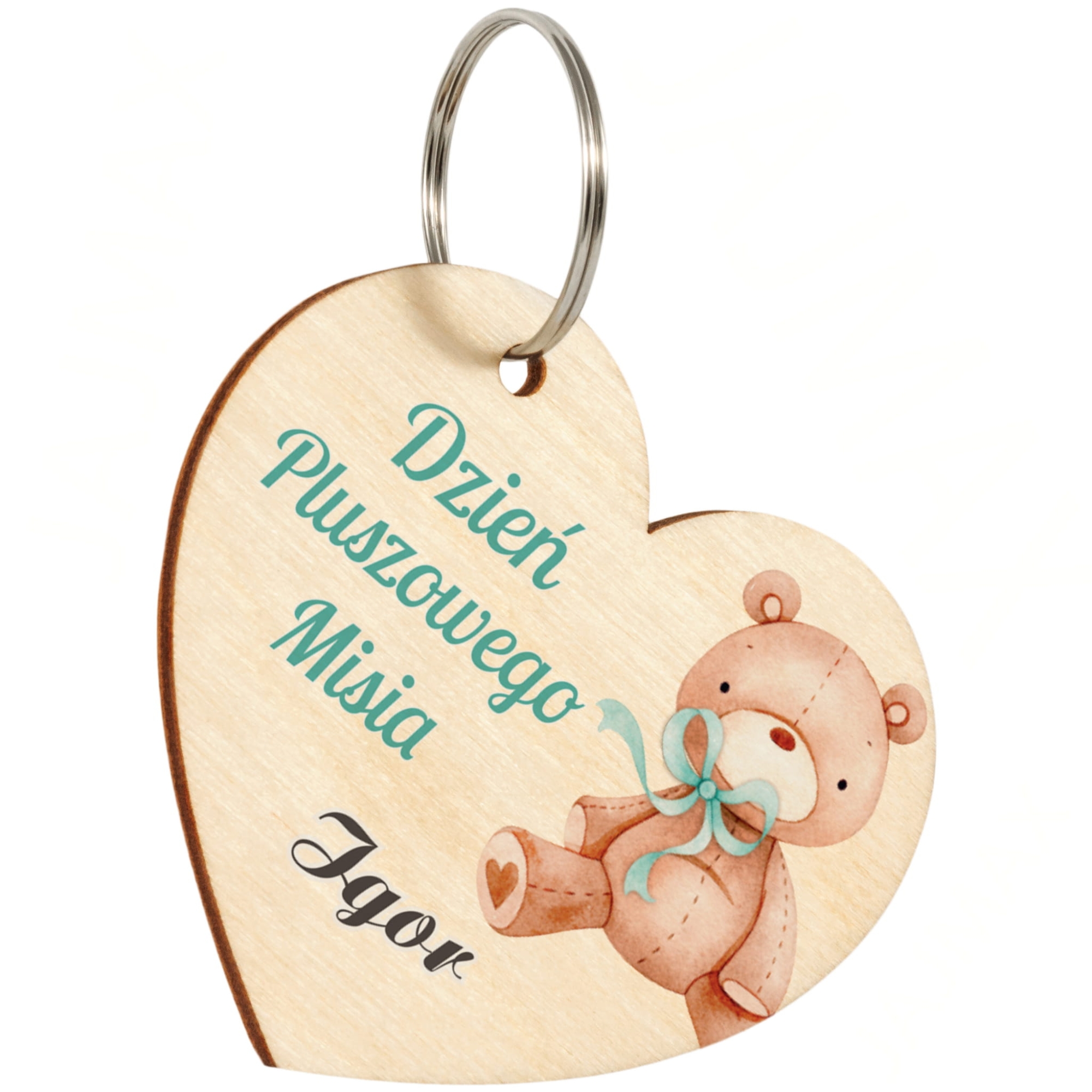 Miodzik z imiennym breloczkiem z kolorowym nadrukiem upominek dla dzieci na Dzień Pluszowego Misia