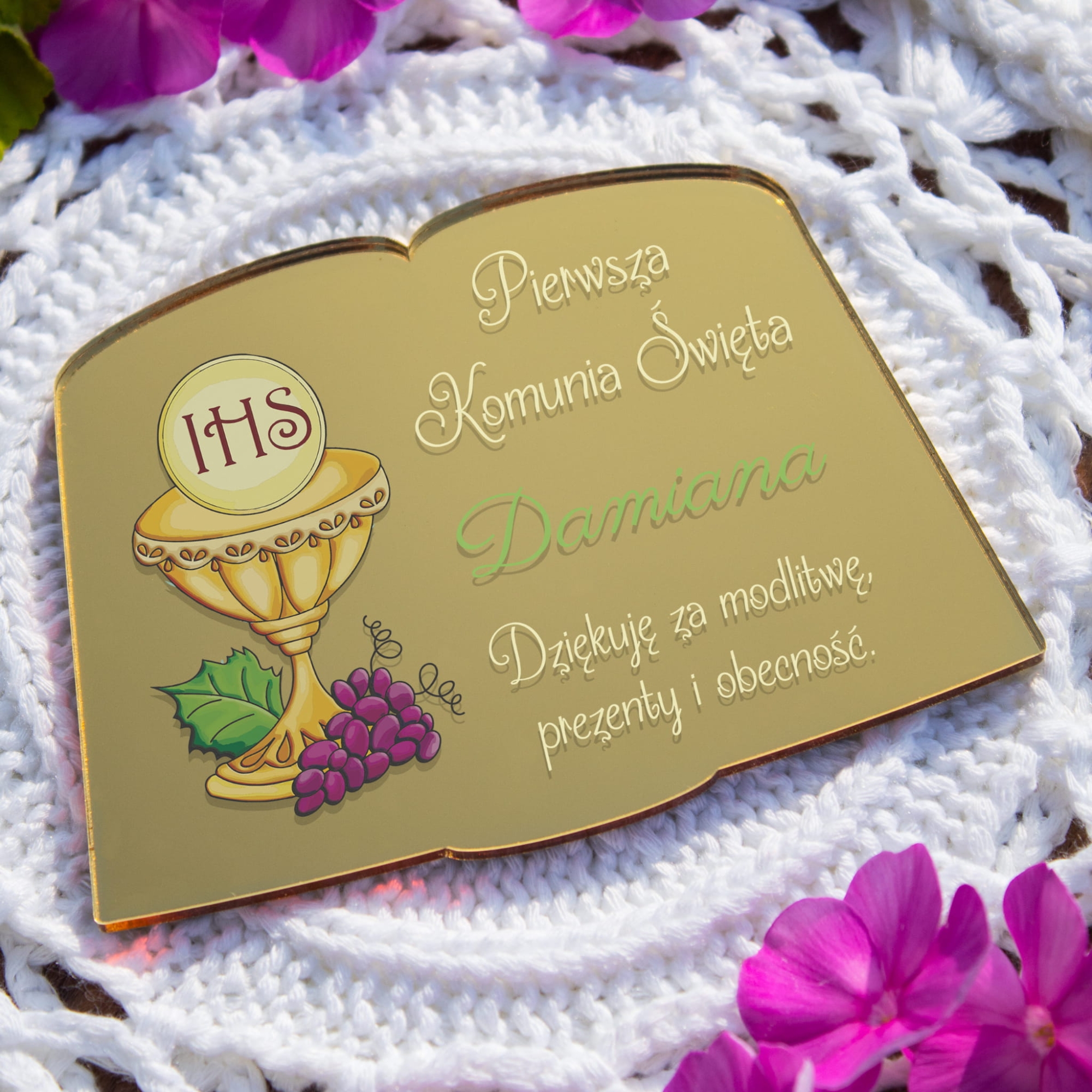 Wyróżnij się dzięki magnesowi komunijnemu, który łączy nowoczesność z klasyczną estetyką. To elegancka pamiątka komunijna, która idealnie podkreśla wyjątkowy charakter wydarzenia.