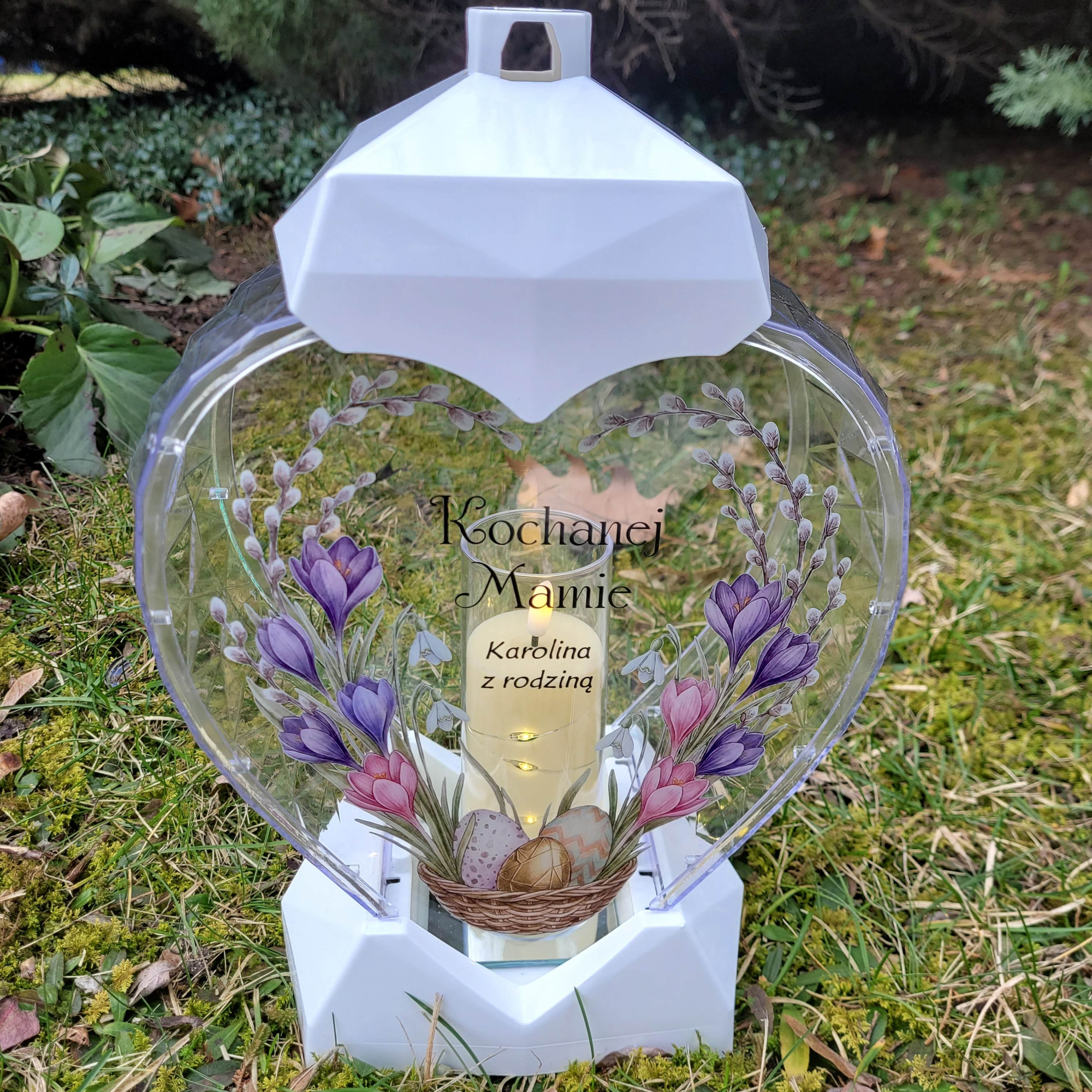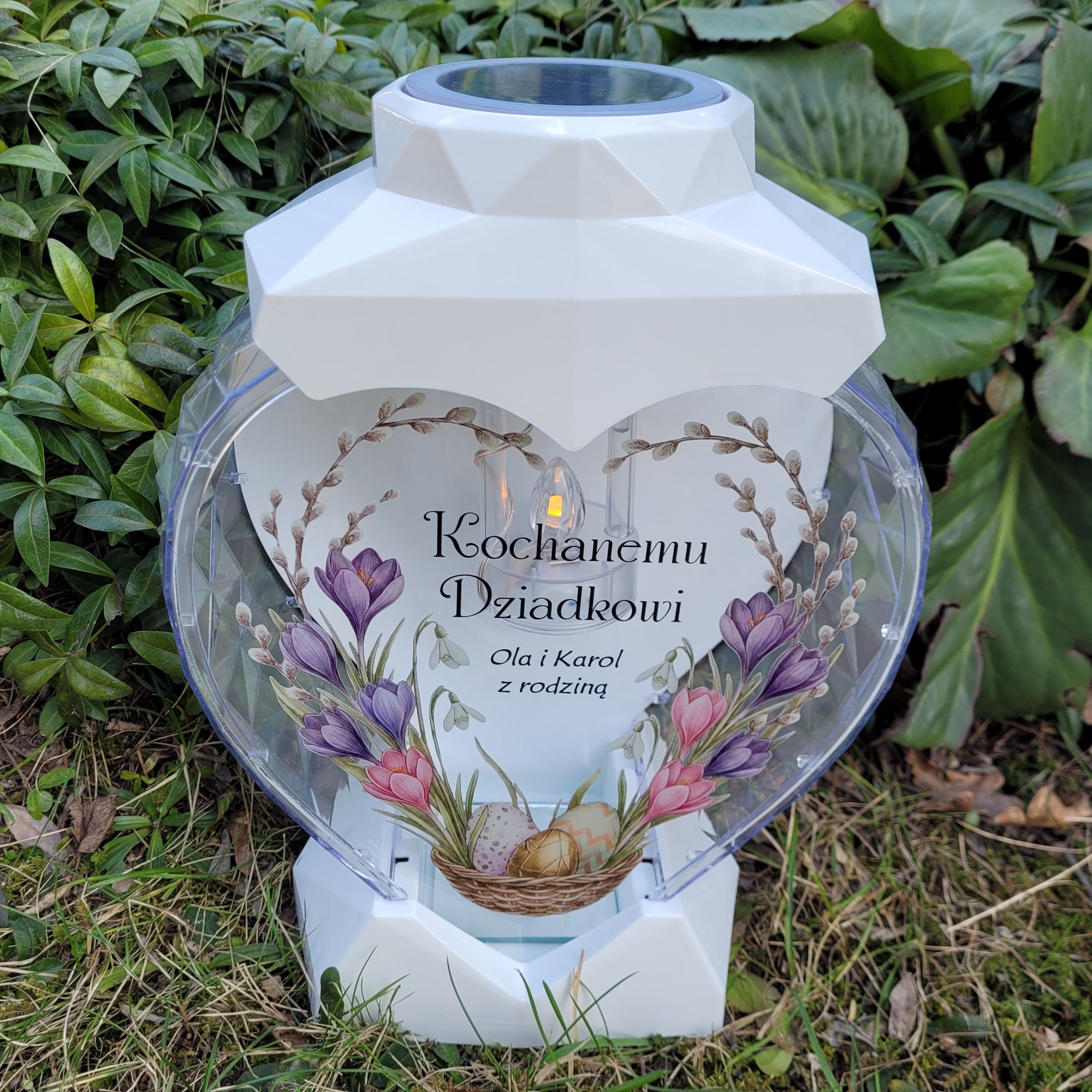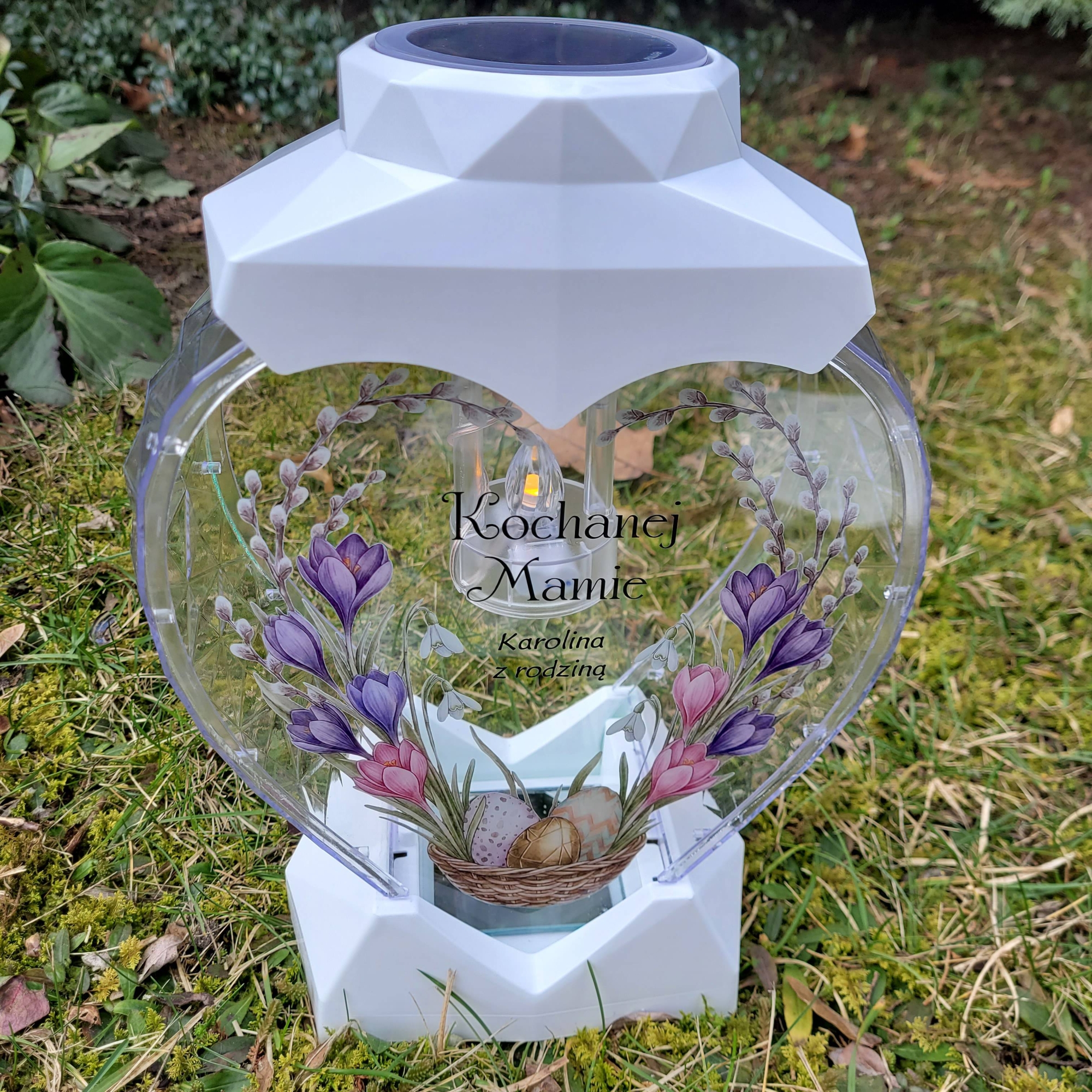 Znicz wielkanocny SOLARNY LED jajko pisanka z podpisem na grób XXL