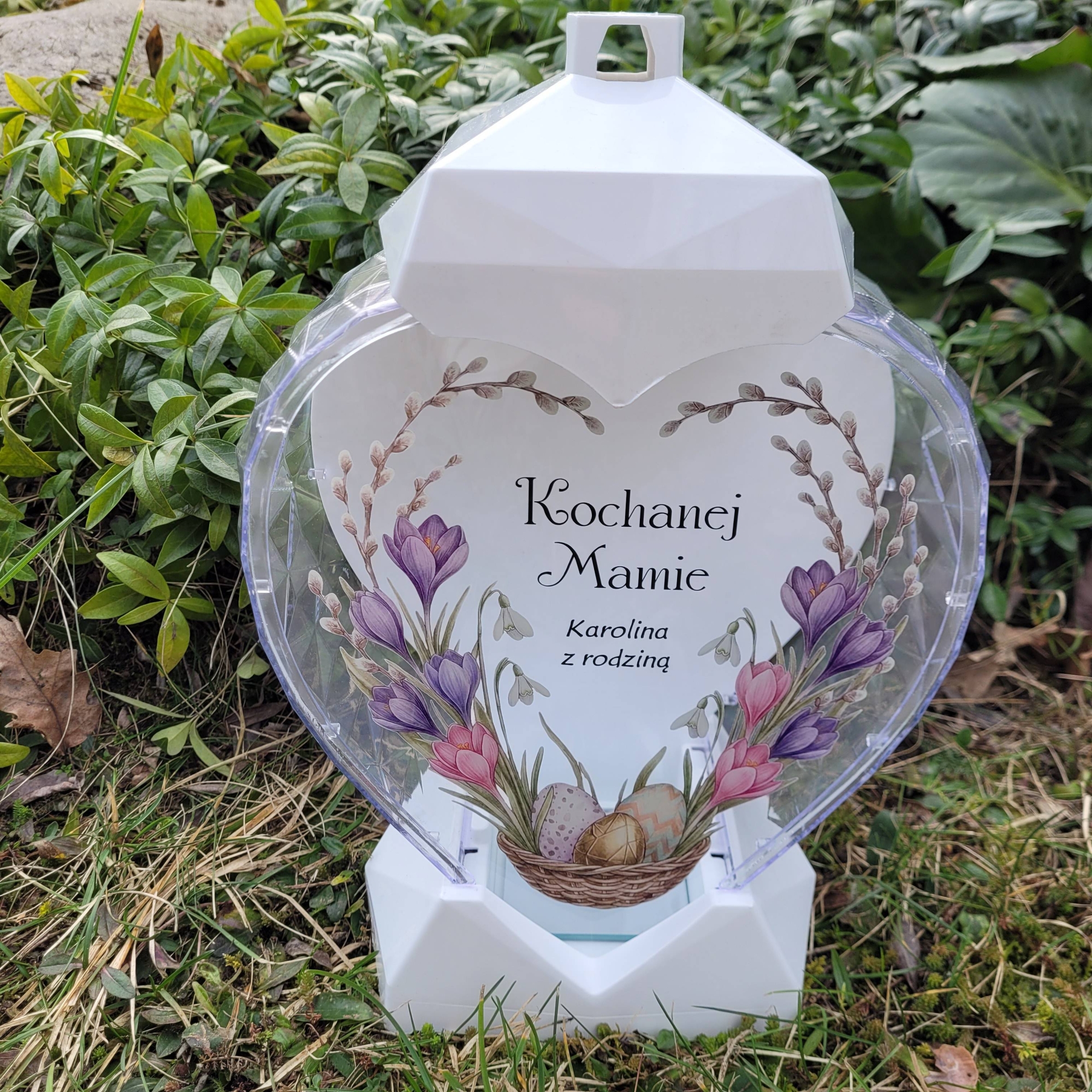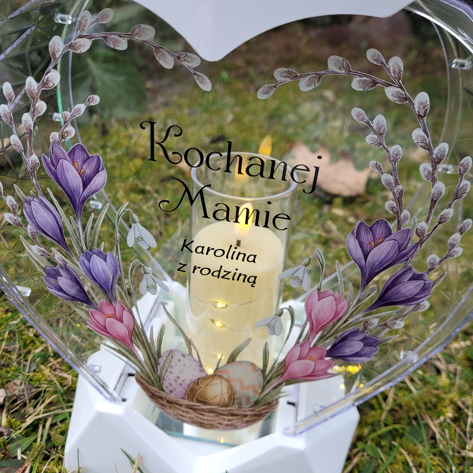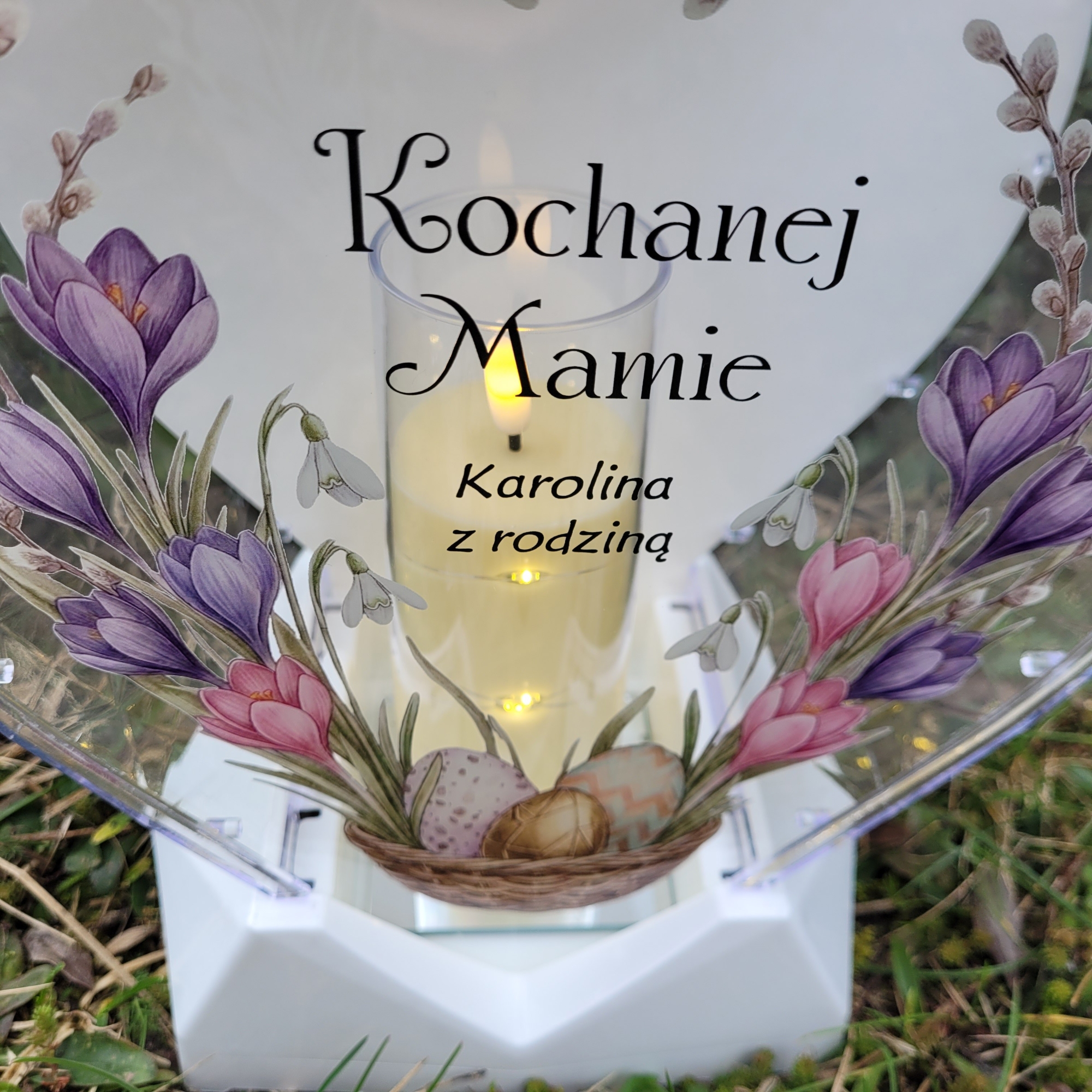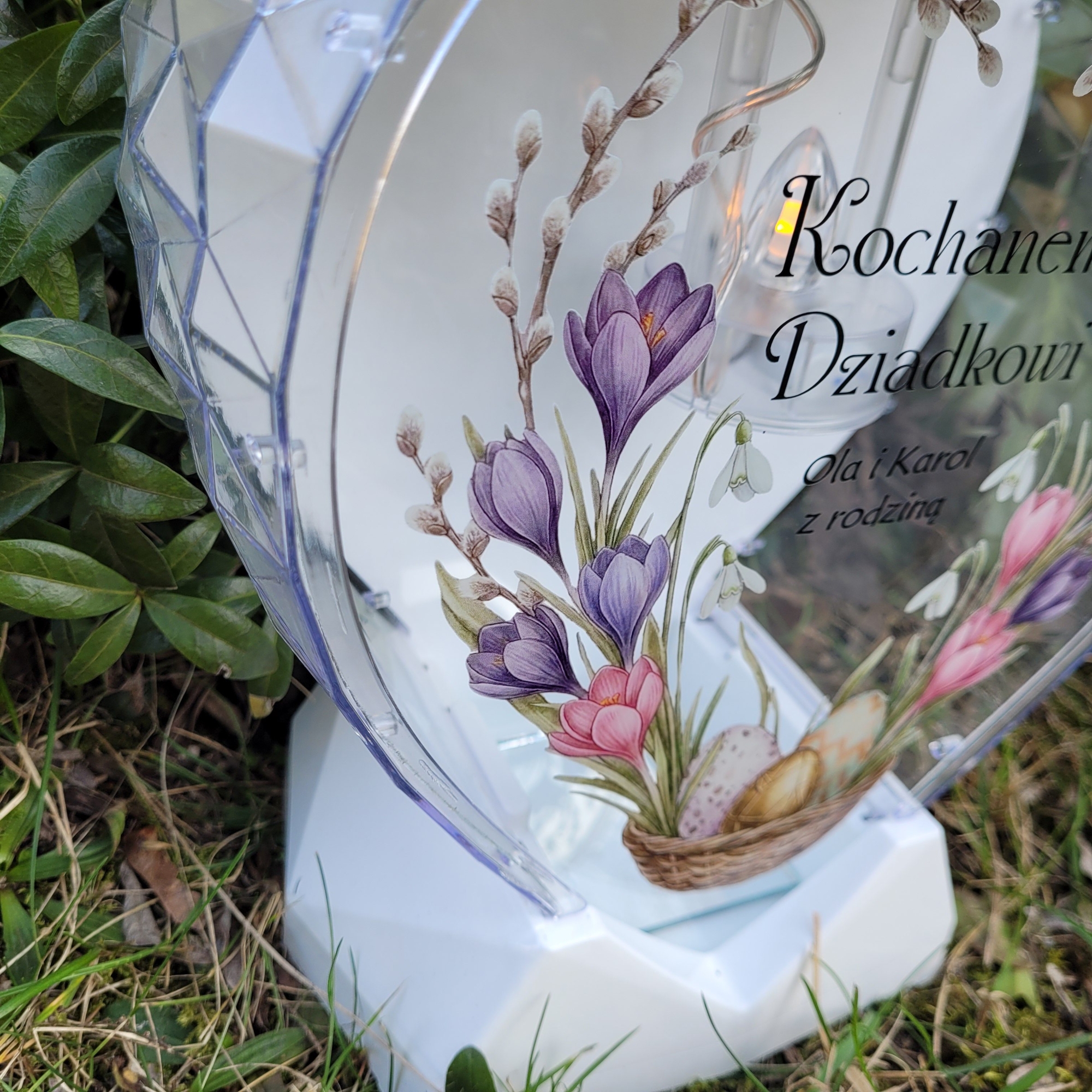 Znicz wielkanocny SOLARNY LED jajko pisanka z podpisem na grób XXL