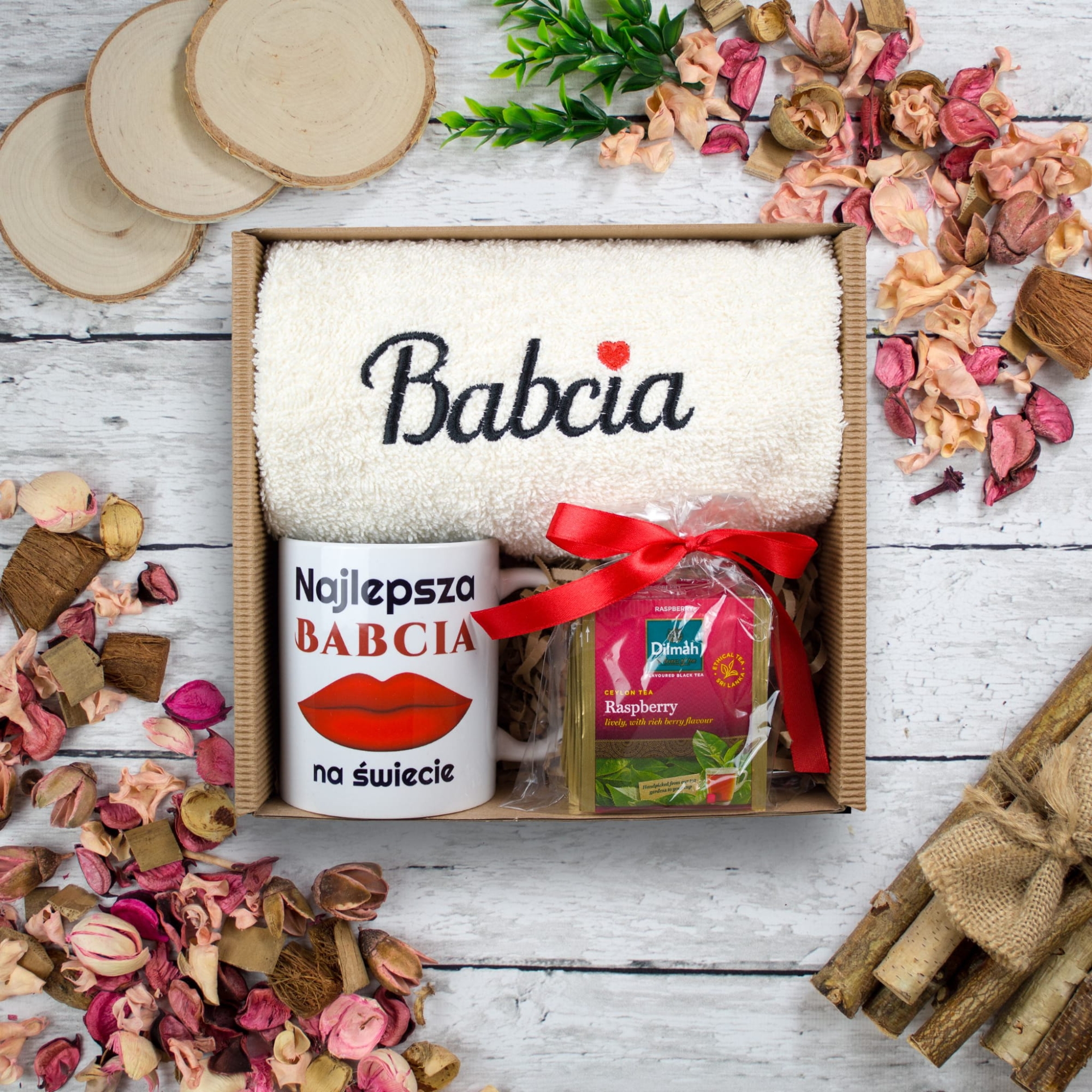 zestaw prezentowy na Dzień Babci KUBEK HERBATA I RĘCZNIK DLA BABCI
